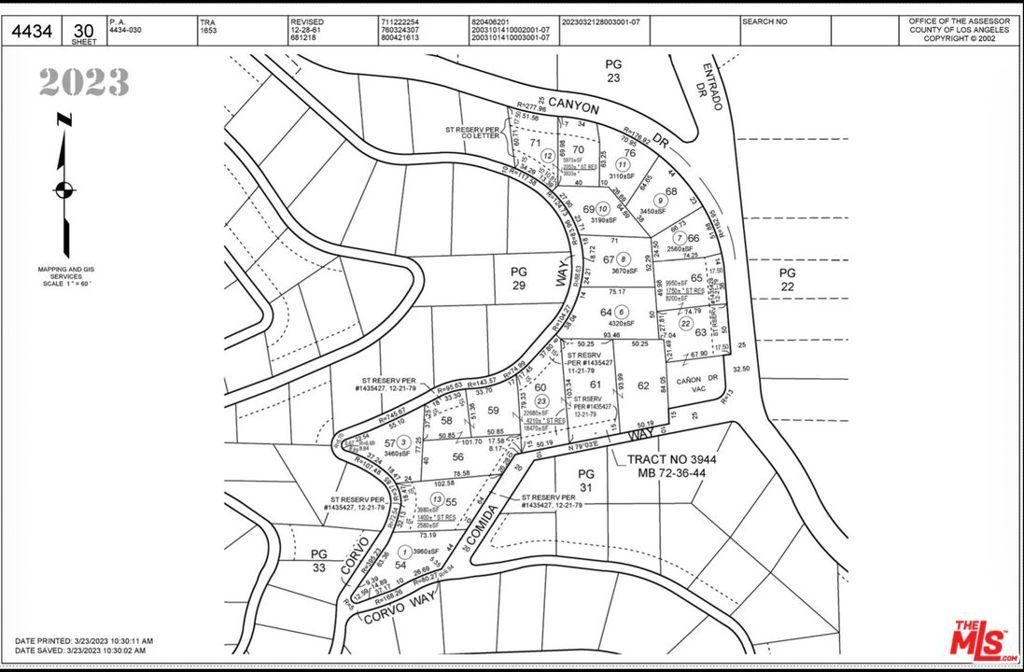 Builder opportunity in Topanga Canyon. Tract 3944, Lot 64 offers approximately 4,520 square feet of hillside residential land on the east side of Corvo Way, just south of Canon Drive. Zoned LCR11L under Los Angeles County, this parcel presents potential for development of a single family residence subject to County review and approval.Located on a paved residential street within an established neighborhood of custom homes. Public water is available through Los Angeles County Waterworks District No. 29. Utilities are in the street. The larger lot size compared to many surrounding parcels enhances design flexibility for experienced hillside builders.Ideal for developers seeking a Topanga infill project with proximity to Malibu, Calabasas, and the Westside. Buyer to independently verify zoning, slope density, geotechnical requirements, septic, utilities, and all development standards with Los Angeles County.