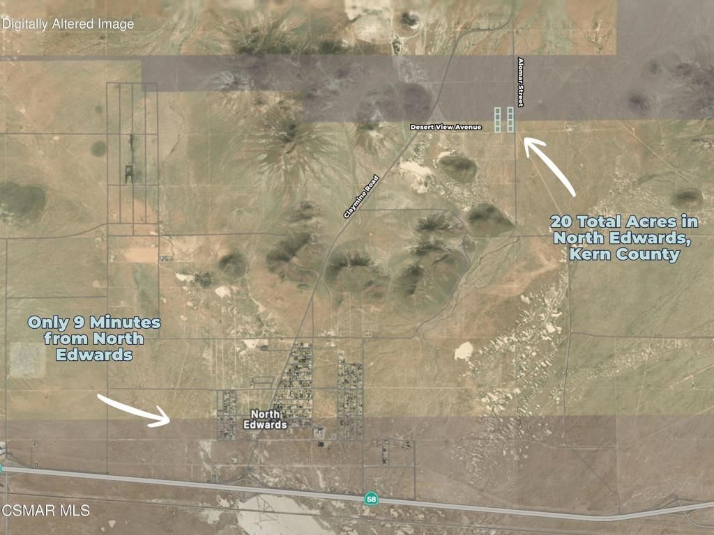 Great chance to own 20 acres of land in Kern County, made up of 8 lots. Each lot is about 2.5 acres, so you get plenty of space. The land is split into two groups of four lots, with a few lots owned by others in between. The property has great access with about 640 feet of frontage on Desert View Avenue and 1,300 feet of frontage on Alomar Street. This land is a great fit if you want to build a home, start a small farm, park an RV, or enjoy the outdoors with ATVs and off-road riding. Most nearby homes use a private well, a septic system, and propane tanks. You're only 9 minutes from Sunshine Market, the main grocery store in the area, and Chuck's Pizza, a local favorite. There are also solar projects planned nearby, including Aratina Solar Center (about 13 miles away) and the Sanborn Solar Project. This may help the area grow over time. Buyer to verify all information, including utilities, boundaries, zoning, access, and intended use. Property consists of 8 parcels located north of Desert View Ave and west of Alomar St. See map. For questions, Call or Text Kaleb (Listing Agent). APNs: #233-042-24-00-4, #233-042-25-00-7, #233-042-26-00-0, #233-042-27-00-3, #233-042-32-00-7, #233-042-33-00-0, #233-042-34-00-3, #233-042-35-00-6