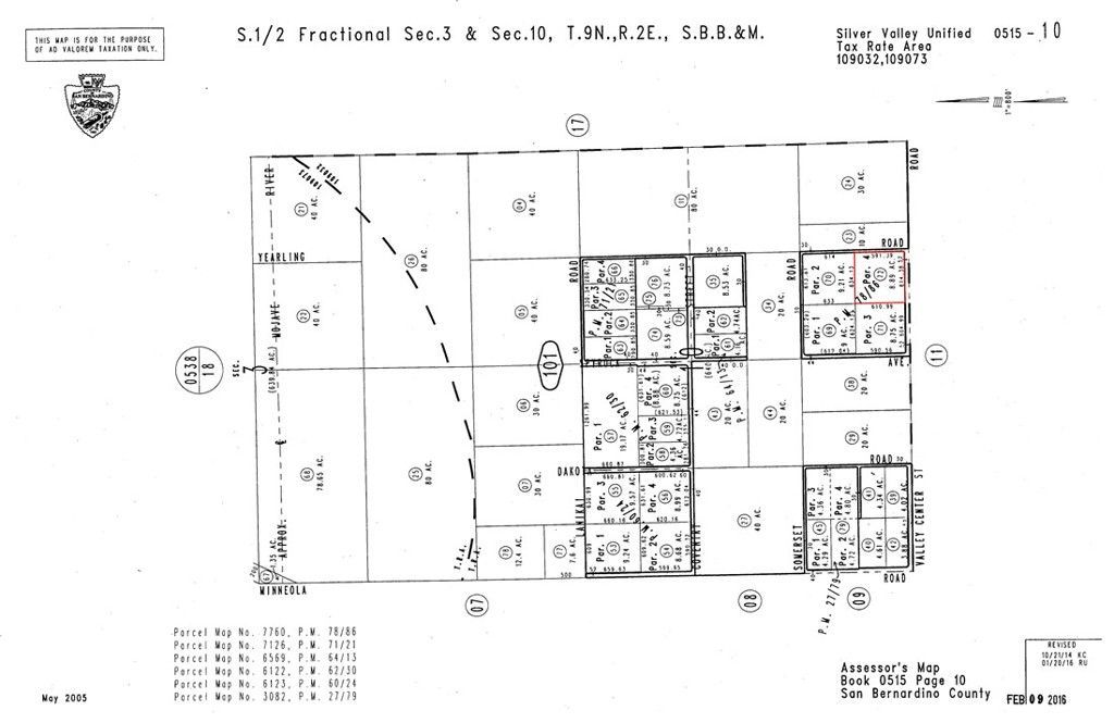 Rare find in Newberry Springs - an expansive 8.89-acre corner lot with both power and water availability, perfect for your desert homestead or agricultural dreams. This premium parcel offers the best of both worlds with paved access via Valley Center Road and a private entrance from Yearling Road, providing excellent accessibility and development potential. Southern California Edison power lines run along Valley Center Road, and the property falls within the Mojave Water Agency service area, offering valuable utility access that's uncommon in desert parcels. The flat, usable terrain provides an ideal canvas for various development possibilities, from a private desert retreat to agricultural ventures. Located in an area known for its agricultural potential and stunning desert vistas, this parcel delivers the perfect blend of accessibility and privacy, while being conveniently situated near Interstate 40 for easy regional access. The property's generous size and corner location offer flexibility for optimal building site placement to capture breathtaking desert views and sunset vistas. Whether you're seeking a peaceful desert homestead, an agricultural opportunity, or a long-term investment, this versatile parcel offers tremendous potential at an attractive price point. APN: 0515-101-72-0000, GPS: 34.88076, -116.75613.