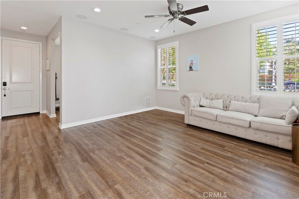 Move right in to this absolute stunner of a townhome in the luxury master planned community of Baker Ranch! Completely decked out with incredible designer upgrades throughout, you will love the open floor plan and plenty of natural light in this highly coveted end unit. The kitchen has gourmet quartz counters, stainless steel appliances (refrigerator included), farmhouse sink, child safe cabinet security features, a large island, upgraded glass tile backsplash, LED lighting, and a reverse osmosis water filter. Eat at the kitchen island breakfast bar or the separate formal dining space. There is an office/den/playroom downstairs in addition to the private side patio. The generous master suite features a rustic sliding barn door from the bedroom to the master bath and walk in closet with California closet organizers. The master bath features upgraded tile, flooring, mirrors, oversized walk in shower, and dual sinks with an abundance of cabinetry. The upstairs laundry room across from the extra linen cabinets includes the high end Samsung washer and dryer. Come and enjoy all the award winning luxury amenities that Baker Ranch has to offer including the 10 parks, 8 heated pools and spa's (including a quiet pool), the mile long hiking and biking trails, fitness stations, basketball, tennis, beach volleyball, and Bocce Ball courts, baseball and soccer fields, fire pits, outdoor fireplaces, BBQ's, clubhouses, hammocks, covered outdoor kitchen, and the Barker Ranch Dog Park.