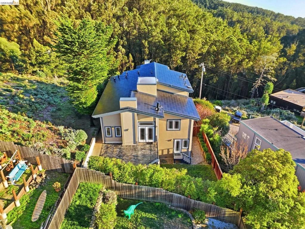 Ideally located in the sought-after El Granada Highlands, this expansive 4BD/3.5BA + office + bonus room retreat captures sweeping panoramic ocean, harbor, & mountain vistas from multiple levels. Thoughtfully designed using Feng Shui principles to enhance natural light & flow, the home offers approx. 3,552 sq ft w/ a rare blend of scale, privacy, & flexibility along the Coastside. Vaulted ceilings, skylights, & expansive decks create light-filled living spaces ideal for everyday comfort & sunset entertaining. The chefs kitchen features Thermador appliances, granite counters, walk-in pantry, butcher block island, & panoramic windows framing scenic outlooks. The upper-level primary suite serves as a private retreat w/ ocean views, custom closet, dedicated office or meditation space, & spa-style bath w/ Japanese soaking tub & separate shower. A lower level in-law w/ private entrance, living area, bedroom, & full bath, great for guests or multigenerational living. Potential ADU conversion. Elevator access connects main living levels, complemented by radiant floor heating, owned solar roof (2020, NEM 2) & dual Powerwalls, & smart security. Minutes to Quarry Park trails, Surfers Beach, Pillar Point Harbor, & downtown Half Moon Bay. A rare opportunity to enjoy elevated coastal living.