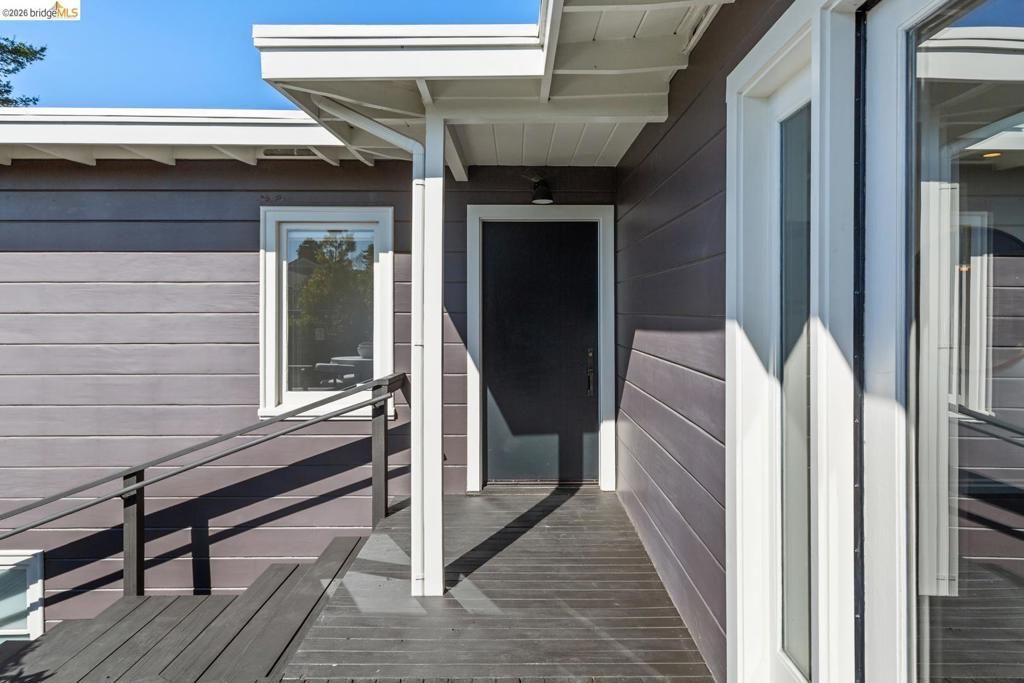 Dramatic modern design meets sweeping Golden Gate Bridge views in this exquisitely remodeled 4BR/2BA North Berkeley Hills retreat. Walls of glass, single-level floorplan opens to front and back decks to create seamless indoor-outdoor living w. maximum privacy - fabulous for entertaining. Striking designer kitchen features state-of-the-art appliances, large skylight - flows into living/dining space w. bold modern fireplace. Luxurious primary suite w. panoramic vistas, spa-inspired bath, custom designed dressing room/closet. 3 addl BRs and a beautifully remodeled bath in sophisticated palette. A/C and numerous systems updates. Hardwood floors, gardens w. fruit trees and raised beds, 1+ car garage, storage. Quiet and private hillside setting near Tilden Park, minutes to downtown Berkeley in a rare blend of privacy, views, and design. A rare gem! BESO Score 6