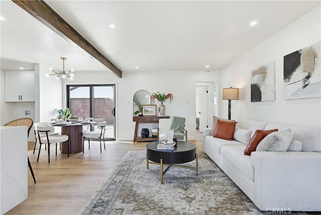 Completely remodeled, this modern and inviting home is ideally located on a private street near the end of a quiet cul-de-sac. The open-concept layout features wide-plank flooring, abundant natural light, and a stunning chefs kitchen with quartz countertops, custom cabinetry, stainless steel appliances, and a large statement island perfect for entertaining. Thoughtful designer finishes continue throughout, including a spa-inspired bathroom and seamless indoor-outdoor flow. Stylish, functional, and move-in ready. This home is conveniently located while still offering privacy and tranquility.