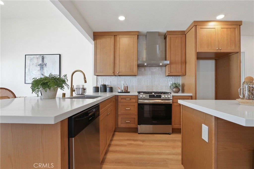 Welcome to a home that checks every box and then casually adds a few more. This beautifully upgraded 3 bedroom, 2 bath residence has been remodeled throughout with todays most desirable finishes and thoughtful design touches. From the moment you walk in, youre greeted by vaulted ceilings and an abundance of natural light that creates an airy, open feel buyers absolutely love. The heart of the home is the open concept chefs kitchen, featuring warm tone cabinetry, crisp quartz countertops, champagne finishes, brand-new stainless steel appliances including a sleek range hood, and a HUGE separate island perfect for entertaining. Wide plank vinyl flooring flows seamlessly throughout the home, giving it that modern, cohesive look. The spacious primary suite feels like a private retreat, complemented by a beautifully upgraded bath with custom tiled shower and new vanity. Both bathrooms have been fully modernized with high-end finishes and clean, contemporary design. Additional highlights include: separate laundry room, Upgraded vinyl windows, and a 2-car detached garage, perfect for a future ADU or Home Office. Dont Miss Out, Schedule a Showing Today!