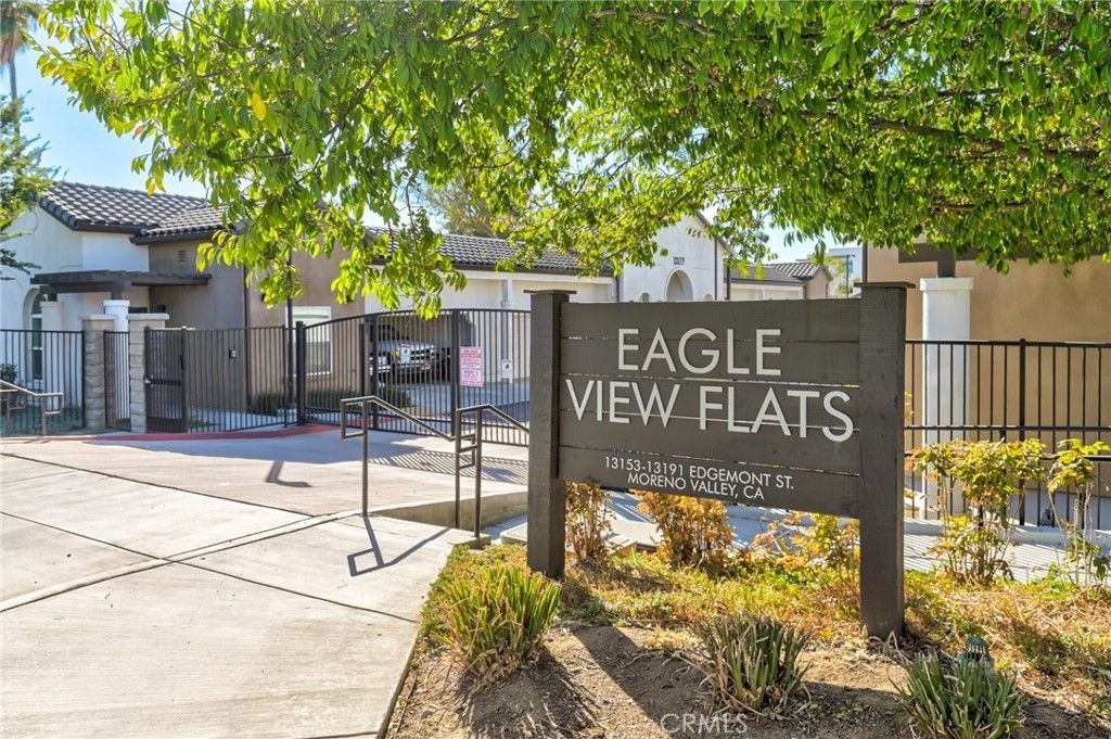 $495 OFF THE FIRST MONTHS RENT! Step into this beautifully updated single-story condo located in the gated community of EagleView Flats in Moreno Valley. This spacious 2 bedroom, 2 bathroom home features a large open-concept layout with a bright living room and a modern kitchen finished with quartz countertops. The bedrooms sit on opposite sides of the unit, offering added privacy and comfort. Both rooms and bathrooms are generously sized and fully updated. The condo includes in-unit laundry hookups and comes equipped with a washer, dryer, and refrigerator. Youll also enjoy the convenience of an attached two-car garage with plenty of storage. A private back patio provides a quiet spot to relax, while the community offers a picnic area for outdoor enjoyment. The location is ideal, with quick access to the freeway, nearby shopping centers, and a variety of restaurants. This is a wonderful opportunity in a sought-after community ? and it wont last long.