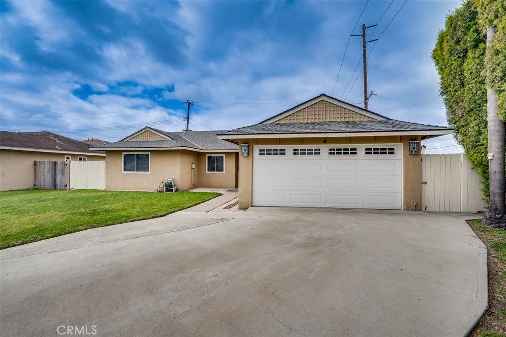 Fabulous beach home, offering nice curb appeal, while residing on a private cul-de-sac. This lovely home is move-in ready and features many quality upgrades. It begins with a spacious formal living room with laminate flooring and a dual pane slider leading to the rear patio. The kitchen features updated cabinetry, granite counter tops, a 2 year old dishwasher along with a newer refrigerator, which is included in the sale. The hall bathroom has been updated with a newer vanity and a bathtub/shower with tiled surround. The bedrooms are all nice sized and offer laminate flooring. The primary bedroom is located at the front of the house. The primary bathroom has been remodeled with a newer vanity, along with a tiled shower and floor. There are also many bonus features, including; tile floors in the entry, kitchen, dining area and hallway, recessed lighting, smooth ceilings, dual pane windows & slider, a wall mounted A/C system, an updated forced air heating system and a tankless water heater. The private rear yard is very spacious and offers a large grassy area, a lattice covered patio, a Tangerine tree, as well as a wide side yard with gated access for extra storage. The rear yard is also West facing, perfect for watching sunsets and capturing the sea breeze! The home is walking distance to award winning schools, several parks, restaurants, shopping and is only a few minutes away from the beach and the Bella Terra Mall.