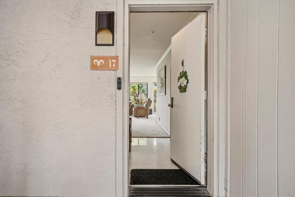Situated in one of Pebble Beachs most desirable gated communities, this beautifully updated street-level 2-bedroom, 2-bath residence offers an ideal blend of comfort and coastal elegance. Nestled in a peaceful forest setting, the home captures lovely views of the iconic Pebble Beach landscape with glimpses of the bay beyond. The light-filled open floor plan is designed for relaxed living and easy entertaining. A warm and inviting living room with fireplace and wet bar opens to a private deck, while the spacious primary suite features dual sinks and a shower-over-tub for a serene retreat. Enjoy convenient street-level entry and direct elevator access to the enclosed one-car garage below, providing security and additional storage. Just minutes from world-class golf, Highway 1, Carmel, Pacific Grove, and Monterey, 17 Shepherds Knoll offers the best of the Pebble Beach lifestyle.