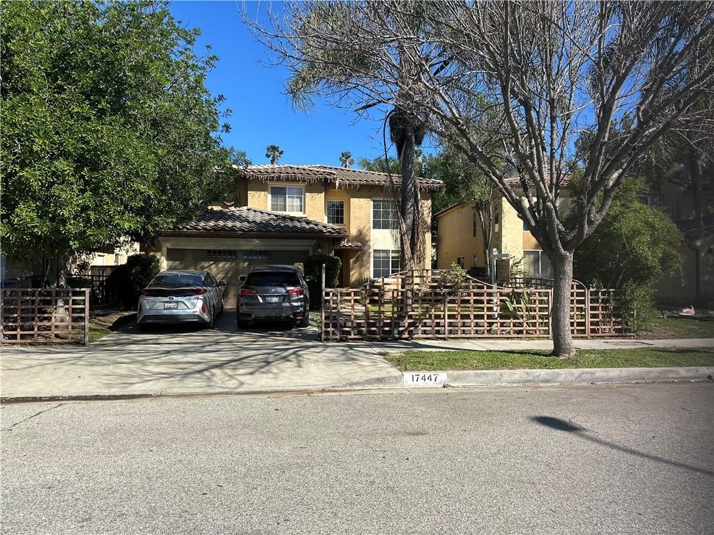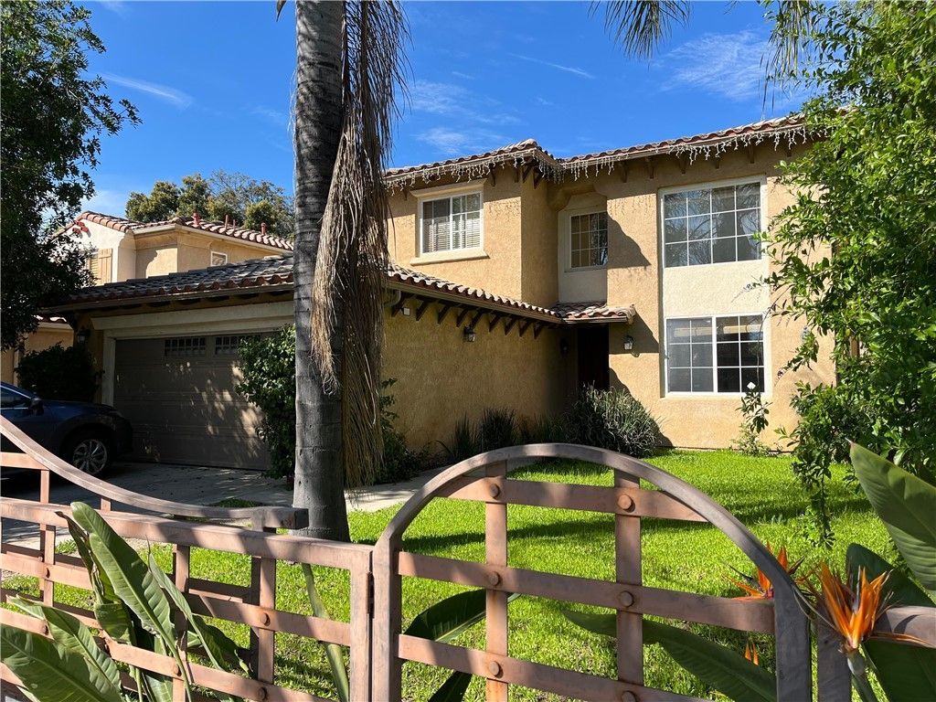Gated 2 story Spanish style home with over 2,200 sq feet of living space. 4 bedrooms and 3 baths! A grand, light-filled entry welcomes you to formal living and dining rooms with wood flooring. One bedroom located on the lower level could be used as an office or guest room. Open Kitchen concept with ample cabinet space and granite counters. Family room with fireplace that leads to low maintenance grassy yard and towering trees for extra privacy. Dramatic staircase leads to a large primary suite with walk-in closet. The primary bath offers dual vanities, make up vanity, shower, and spa tub. Two additional bedrooms share Jack and Jill style bathroom. 2 car garage with direct access. Separate laundry room. Conveniently located in a lovely pocket of Lake Balboa!!