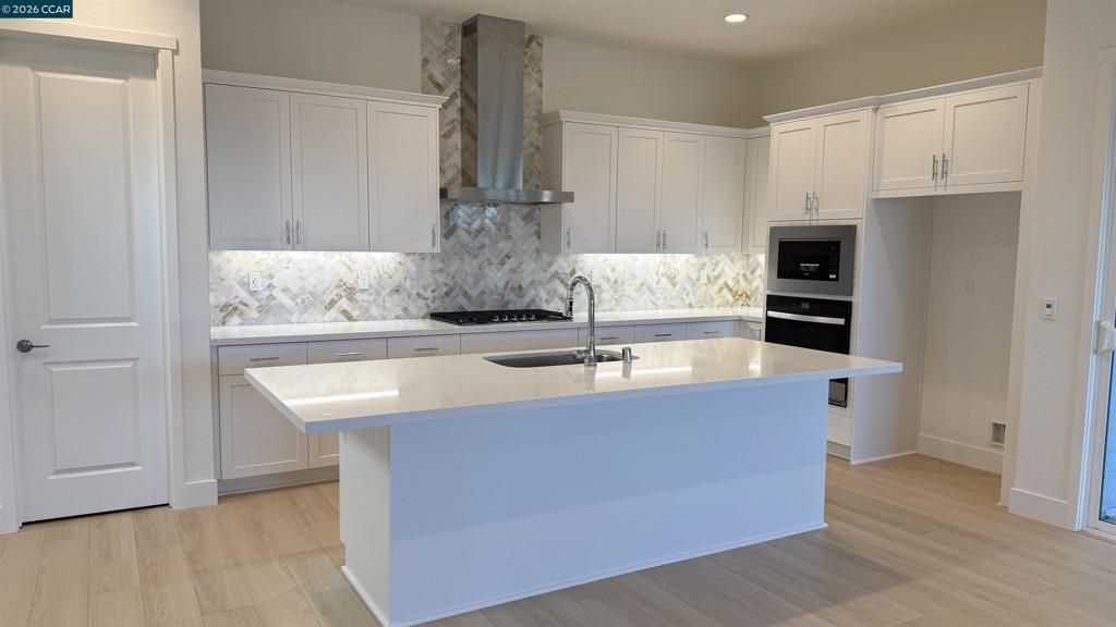 Brand new North East facing 5 bedroom home at Capri is ready for move-in! Home has been highly upgraded with incredible finishes and designer upgrades that include an abundance of beautiful white cabinetry with rich black stainless steel hardware, oversized sliders for additional natural light, Stunning counters, backsplashes and more. This exceptional luxury residence is situated with no rear neighbors for added privacy. Additionally, there is a 5th bedroom and full bath on the lower level- perfect for extended family or guests. Home also has a cook's kitchen with large center Island, plenty of cabinets, built-in stainless appliances and large outdoor covered California Room with comfortable backyard for your enjoyment just steps from the lake. The upper level offers spacious bedrooms, laundry, shared bath, loft and sumptuous Primary suite with oversized shower, freestanding soaking tub, walk-in closet. SOLAR and SMART elements are INCLUDED at no charge. Rate Buy-down available. Don't delay!