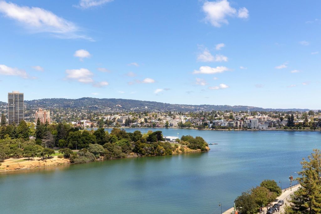Your own private sanctuary! This sexy corner unit boasts floor-to-ceiling windows and an expansive 30+ foot patio with panoramic Lake Merritt views. Enjoy your morning coffee or al fresco dining as the lake becomes a living canvas from sunrise to sunset. The owners spared no expense in a high-end renovation. Custom closets, double-pane windows, and a spacious integrated work area with built-ins blend beauty and function. Italian stone floors and diamond-finished plaster walls exude craftsmanship, while the chefs kitchen features Miele appliances, a Caldera glass-top stove, and seamless cabinetry. A dedicated bar with sink and refrigerator makes entertaining effortless. Both bathrooms offer radiant heated floors; the guest bath includes a Japanese soaking tub. Upgraded copper plumbing and other premium touches complete this exceptional home. Lake Royal provides a vibrant community, 24-hour secured parking, a rooftop patio with sweeping views, and easy access to BART, dining, shops, and theaters. Choose extraordinary?you deserve it! Views: Downtown