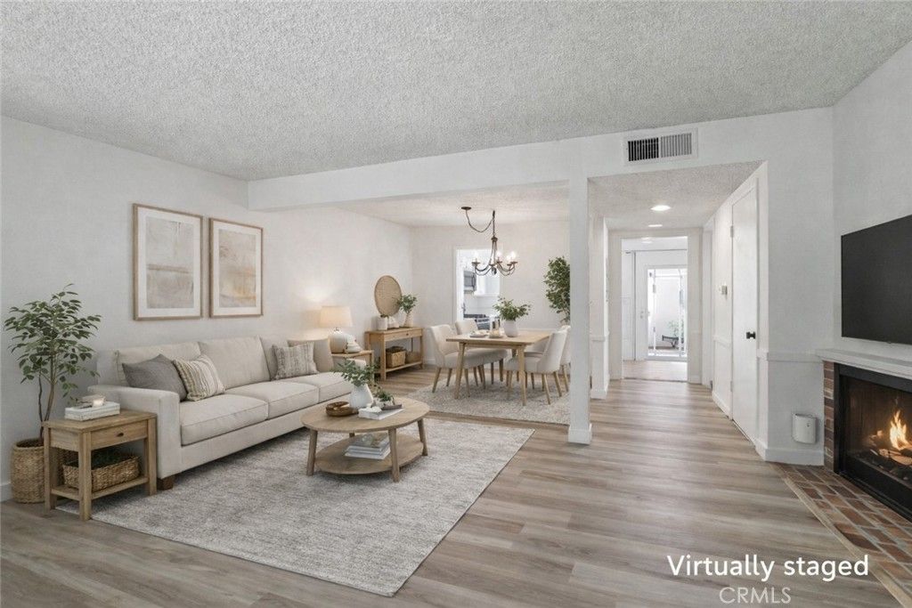 Welcome to this move-in-ready townhouse offering comfort, style, and thoughtful updates throughout. Recent improvements include new flooring, fresh interior paint, and recessed lighting that brightens the home. The updated kitchen features new bottom cabinetry, quartz countertops, and an upgraded sink and faucet, perfect for everyday living and entertaining. The inviting living room includes a cozy fireplace and wet bar area, creating a great space to relax or host guests. The home offers two spacious primary bedrooms, each with walk-in closets, en-suite bathrooms, and ceiling fans for added comfort. Additional highlights include central A/C and heating, newer dual pane windows, a private two-car garage with direct access, and a patio located between the home and garage. Enjoy resort-style community amenities including a pool and spa. A wonderful place to call home.