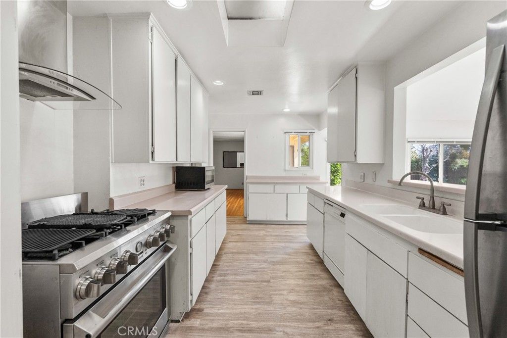 Located in the heart of Northridge, this spacious ranch-style home sits on an expansive nearly 19,000 sq. ft. lot and offers a versatile layout with room to grow. The home has been thoughtfully expanded with permits and features three bedrooms, a large living and dining area, and an inviting family room connected to the kitchen and breakfast nook. As you enter, you are welcomed by beautiful hardwood floors, a cozy fireplace, and a light-filled living room highlighted by a large bay window that brings in abundant natural light. Down the hall are three comfortable bedrooms that share a remodeled bathroom, creating a functional and private sleeping area. The kitchen offers generous space and includes a commercial-style oven and stove, opening to a large family room and breakfast nook?perfect for everyday living and entertaining. A sliding glass door leads to the beautifully landscaped backyard, featuring drought-resistant plants and a peaceful setting ideal for relaxing or hosting gatherings. On the opposite side of the home near the kitchen are two additional rooms that were previously configured as an ADU, offering excellent potential to convert back for extended family, guests, or rental income. Additional highlights include owned solar, a desirable Northridge neighborhood, and a large private yard with endless possibilities. This property offers a rare combination of space, flexibility, and location?a wonderful opportunity to make it your own.
