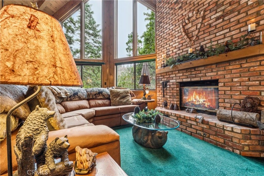 First Time on the Market! Offered by the original owner, this truly special custom-built prow-style mountain home is a rare opportunity with a special surprise. Surrounded by towering evergreens on a generous ¼-acre lot, this one-of-a-kind retreat blends classic mountain architecture with unforgettable personality. The main level features 2 bedrooms and 1 bathroom, along with an open-concept floor plan that seamlessly connects the kitchen, dining area, and living room. Soaring ceilings and a dramatic wall of glass flood the space with natural light and frame the surrounding forest, leads directly to an expansive entertaining deck. Kitchen has updated appliances and counter seating. The primary suite loft offers a private elevated retreat overlooking the main living space offering has ductless AC. Adding even more artistic charm, select rooms showcase custom-painted wall murals created by a talented local artist, giving the home a unique sense of story and personality that complements its mountain setting. Home is perfect for gatherings, relaxing, and making lifelong memories. Downstairs, prepare for a surprise: a truly unique lower-level family room designed as a vintage 1950s diner, complete with authentic original pieces salvaged from a historic Los Angeles diner. Highlights include nostalgic counter and booth seating, a vintage Coca-Cola vending machine, and classic décor that transports you to another era, an entertainers dream and a conversation piece like no other. With 3 bedrooms, 3 bathrooms, custom construction, and a setting that feels worlds away yet close to mountain amenities, this home is rich with character and memories waiting to be made. A rare offering?homes like this dont come along often.