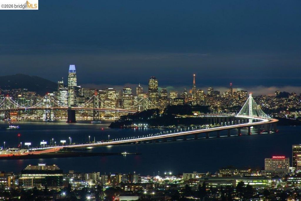 Unobstructed 3-bridge SF BAY VIEWS! Stunning level-in Mid-Century Modern offers the best of both worlds: a serene retreat and quick access to the conveniences of town. Move-in ready. Living/dining ideal for entertaining. Glass doors lead to a room-length viewing deck. Indoor/outdoor flow enhanced by entry courtyard w/sculptural pond. Every room is bathed in natural light and has delightful views. Eat-in kitchen features stainless steel counters, creating a dramatic, clean aesthetic repeated through the house. All floors are hardwood maple. Home boasts four ensuites: Main living level has 2 bedrms/2baths overlooking private courtyard. Upstairs, the spacious primary offers views of SF BAY and Claremont Canyon. Includes: balcony, office alcove, luxurious primary bath w/soaking tub, steam shower, his 'n hers closets, laundry room. Large studio on lower level with full bath and separate entrance. Don't miss the Murphy bed and kitchenette. Studio can be used as guest suite, exercise/dance studio, or in-law (no sep utility meter). It has a charming private patio with raised-bed garden. AC. Everything is updated with style, even the 2-car garage! Solar, Powerwall, EV Charger. Just minutes to the Claremont Hotel, Peet's Coffee, Rockridge, Elmwood, hiking trails, freeway access.