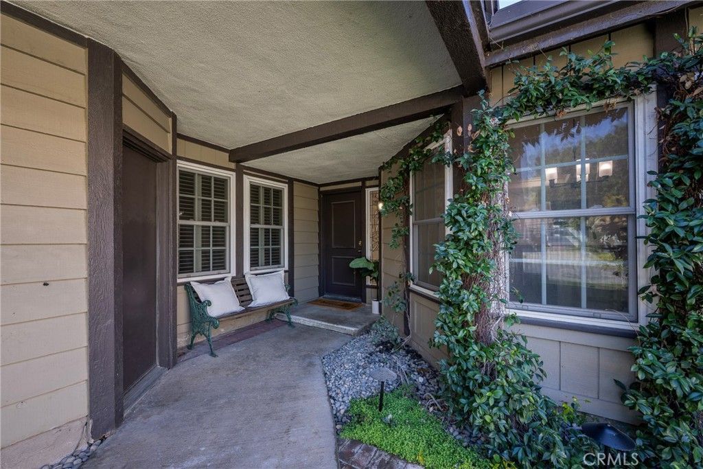 Located on a quiet cul-de-sac in the highly desirable Travis Ranch community of Yorba Linda, 21182 Via Este Drive offers a rare blend of privacy, natural beauty, and everyday comfort. With direct access to nearby walking trails and greenbelts, this neighborhood is known for its peaceful streets, scenic foothill surroundings, and a true sense of calm. Thoughtfully positioned to capture natural light, the home opens into spacious living and dining areas highlighted by vaulted ceilings, a cozy fireplace, and dual sliding glass doors that create an effortless indoor-outdoor connection. At the heart of the home, the light and airy kitchen features crisp white cabinetry paired with stone countertops, recessed lighting, a charming breakfast nook, and a convenient breakfast counter. A wall of windows overlooks the front yard, filling the space with soft morning light and views of the surrounding greenery. The primary suite serves as a tranquil retreat with high ceilings, generous proportions, dual closets including custom built-in storage, and a well-appointed en-suite bath complete with a soaking tub, separate walk-in shower, and dual-sink vanity with stone countertop. A spacious secondary bedroom offers exceptional versatility, easily accommodating guests, a home office, or creative space. The updated hall bath is finished with porcelain wood-grain tile flooring, a stone countertop, and a shower/tub combination. Step outside to a private backyard designed for relaxation and easy maintenance. Artificial turf, block walls, and an alumawood patio cover create a clean and inviting outdoor setting, while mature fruit trees offer a reminder of why Southern California living feels so special. With no neighbors directly behind, the space feels open and serene. Fresh new carpet, newer windows and doors, an updated HVAC system, and a whole-house water conditioner enhance comfort and efficiency throughout. Beyond the home itself, Travis Ranch is cherished for its quiet atmosphere, beautifully maintained greenbelts, and immediate access to walking and hiking trails through Yorba Lindas foothills. Zoned for Travis Ranch Elementary and Middle School and conveniently close to parks, shopping, and commuter routes, the location balances tranquility with accessibility. This is more than a two-bedroom home, its an opportunity to live in one of Yorba Lindas most serene and established communities. 21182 Via Este, You WILL LOVE Living Here!