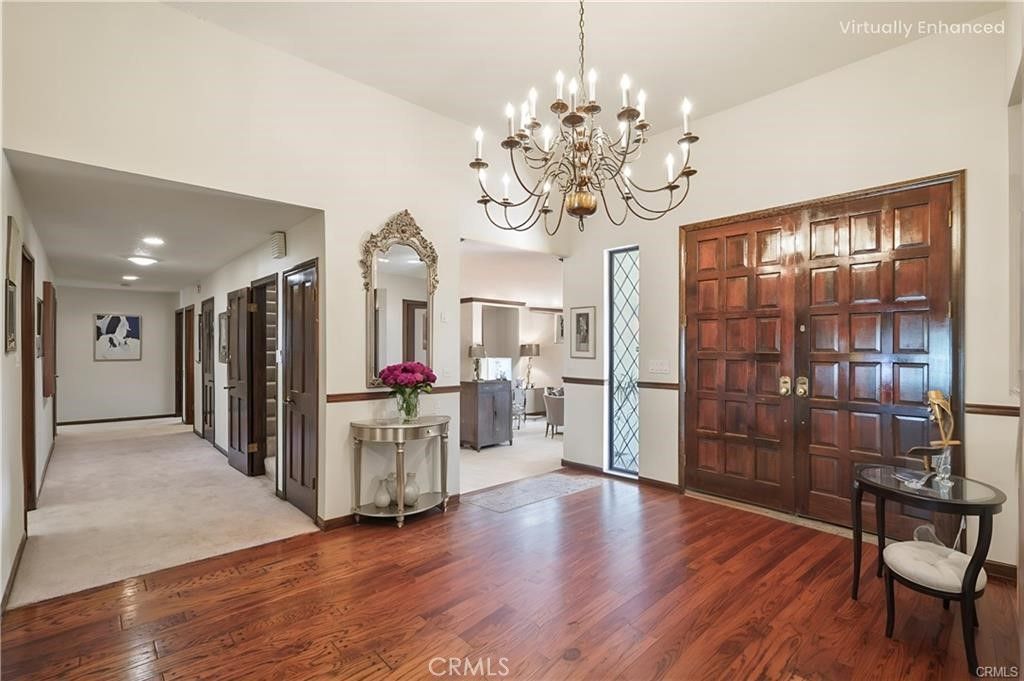 A stunning 4,050 sq ft. 4 Bedroom, 5 Bath home, that sits on a large lush ½ Acre lot at the end of a quiet Cul-de-sac in the highly coveted Roy Rogers Estates. Tucked away in the foothills of Chatsworth, close to awarding winning schools, Popular restaurants, entertaining and shopping. Freeway access is also close by. This tranquil Oasis is ideal for raising families and entertaining guests alike. Open the tall beautifully stained Double doors to a large foyer entry where you will find high ceilings and beautiful wood floors that lead you into a thoughtfully laid out floor plan. There is a chef's kitchen with lots of windows and natural light that features newer top of the line appliances and eating area, perfect for family meals. The kitchen opens up to an exquisite formal dining room. There is a huge cozy family room with a wet bar, gas fireplace, vaulted wood ceilings and large Bay window to fill the room with sunlight, step down to the formal living room with French doors, balcony, gas fireplace to entertain your guests. Just across the entry is a Wood Panel Parlor room with beamed ceilings, perfect for a grand piano and sitting area. The master bedroom is oversized with French doors opening up to your private balcony. Theres good size dressing area with a cedar closet and spa style bathroom with huge built-in Soaking tub and large glass shower. Bedroom #2 opens to the backyard & hillside it features a large closet and full bath. Bedroom #3 is light and bright with large closets, double sinks and full bath. Bedroom #4 or the Loft has its own private staircase that leads to a larger room with wood floors, walk in closet and three quarters bath. This room is versatile and could be anything your heart desires: theater, bonus room, etc. The 5th bathroom is a guest powder room perfectly located in the hallway between the Dining Room and the wet bar. The home also has a three-car garage with ample storage area. The lush yard is peaceful & private, with mature trees, lots of plants and decking, perfect for barbecues and family entertaining. There is an in-ground spa for relaxing. This home is one-of-a-kind offering, country charm and classic elegance with modern appliances making it ideal for families and entertaining alike, call and make your appointment to see before it's gone