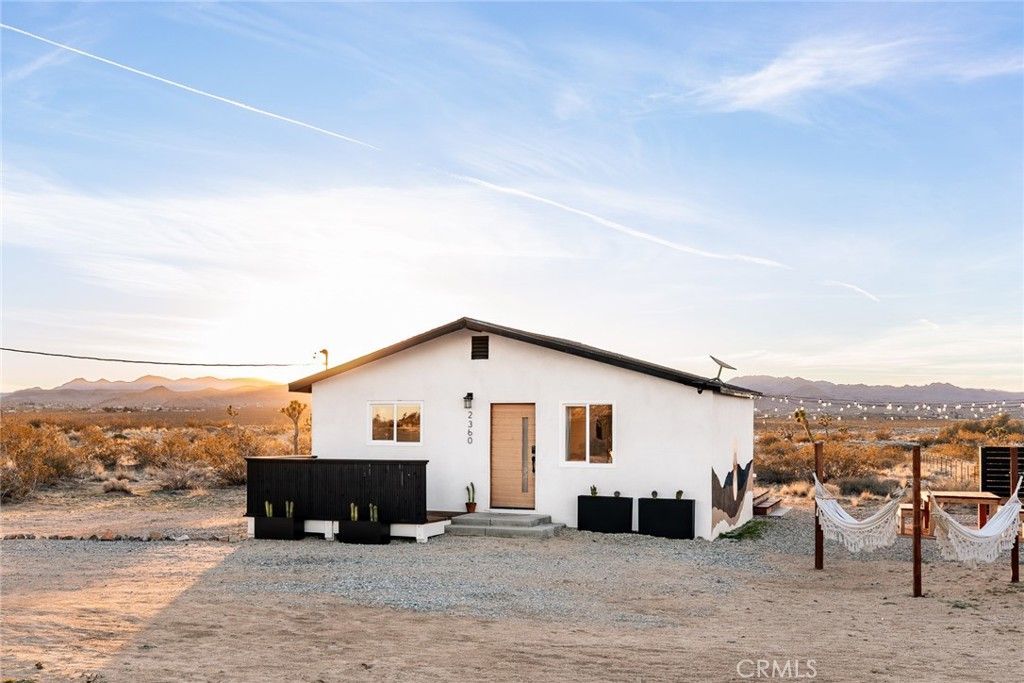Welcome to Casa Asaya, a dreamy chic retreat surrounded by acres of desert flora, stunning 360 degree mountainscapes, and iconic postcard views. Splashes of pink and yellow illuminate snow-capped mountains and ancient volcanic mesas to the west, awe inspiring moon-rises ascend over Goat Mountain to the east, thousands of acres of open BLM land stretching into the horizon 1 block north, and big sky views of Joshua Tree National Park to the south - all yours for the taking. The world-famous Integratron sits so close it appears almost as if its in your own backyard. Stepping inside, the striking exterior landscape is juxtaposed with modern finishes in a soothing neutral palette featuring custom tile and millwork throughout. Cozy up with a book in the living room cubby, take a bubble bath in the ultra-modern bathroom, cook a gourmet meal in the spacious new kitchen, or wander out to the fire pit for front row seats to a meteor shower under Landers famously dark skies. This special 2.5 acre income-producing guest favorite property with 94 glowing reviews is fully fenced for your furry friends and sold turnkey with all furnishings and Starlink internet. Youll never want to leave, but should you choose to roam youre minutes to La Copine, Giant Rock (the pizza place or the historic rock), Joshua Tree National Park, Pappy & Harriets, hiking, and so much more.
