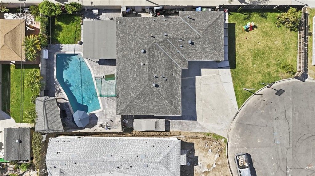 Affordable single story POOL home in located at the end of a cul-de-sac in North Santa Ana! Recent upgrades include a newer comp roof, PEX re-pipe, 4 mini-splits (AC), upgraded pool equipment, and extensive stamped concrete in the back yard around your in-ground Pebble Tec pool! Interior features include: Spacious living & dining room area with wood laminate flooring, upgraded Galley kitchen w/upgraded counters + tile backsplash, stainless steel appliances, and lots of cabinet & counter space! There are 3 spacious bedrooms (all with mini-split ac's) and 1.5 bathrooms! There is a 2 car attached garage with laundry area and paved RV access on the left side of the house! Dream back yard with extensive stamped concrete, huge covered patio area, another detached patio/gazebo, an in-ground Pebble Tec pool, and a grassy area too! Great location convenient to the 22/57/5 freeways, Disneyland, Santa Ana College, lots of shopping, and favorite restaurants too!