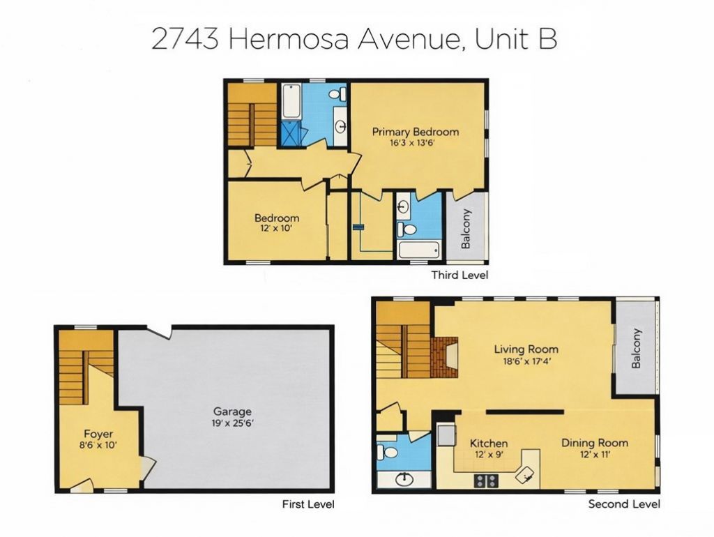 2743 Hermosa #B is a beautifully renovated 2-bedroom, 2.5-bath townhome is situated in a small, well-maintained complex of only five units. With direct access from the attached 2-car garage, the entry level features a welcoming foyer with a coat closet. A brand new washer and dryer are located conveniently in the garage. The second level includes the living room, a powder room, and an open kitchen that connects seamlessly to the dining area, filled with natural light from many windows. The living room offers recessed lighting, a gas fireplace, and access to a private deck. The updated kitchen features a peninsula layout with new countertops, backsplash, stainless steel appliances, and modern lighting. The third level is comprised of two bedrooms and two remodeled bathrooms. Both bedrooms have cozy carpet flooring, and the spacious primary suite features a large walk-in closet with access to a second private patio. Additional highlights include wood-look flooring throughout the main living spaces, central heating and air conditioning, and ample storage throughout. This unit is set back from the street, ensuring a peaceful and quiet atmosphere, and it shares only one common wall, adding to its privacy. The property is zoned for award-winning Crescenta Valley High and Rosemont Middle schools and offers an exceptional opportunity to own a move-in-ready home in one of the areas most desirable neighborhoods. Come find home in this renovated Montrose-area gem.