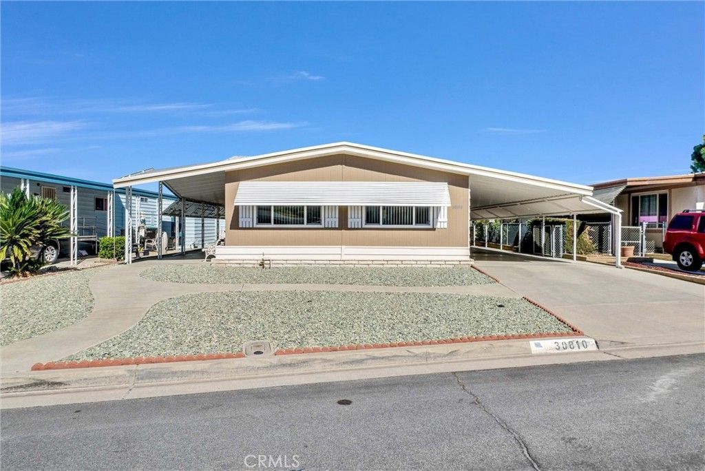 Tranquil 55+ Living with Mountain Views & Land Ownership. Welcome to 30810 Silver Palm Dr. this beautifully maintained 2-bedroom, 2-bathroom home offering 1,440 square feet of bright and comfortable living space in a desirable active senior community. Designed with an open-concept layout, the home is filled with natural light, creating a warm and inviting atmosphere throughout. The spacious kitchen flows seamlessly into the living and dining areas ? perfect for everyday living or hosting friends and family. Step outside to your private patio and enjoy peaceful mornings or evening sunsets with scenic mountain views. Enjoy the rare benefit of land ownership ? no space rent ? providing long-term value and peace of mind. Residents have access to resort-style amenities including Free unlimited golf, Heated swimming pool & spa, Sauna & fitness center, Clubhouse & community center, Library, card room, billiard room, Barbecue area and beautifully maintained grounds. Ideally located near shopping, restaurants, parks, Heritage High School, with convenient access to the 215 freeway, this home offers both comfort and accessibility. With low HOA dues, no Mello-Roos, RV parking, and an unbeatable combination of affordability and lifestyle, this is the perfect opportunity to enjoy peaceful, active senior living.