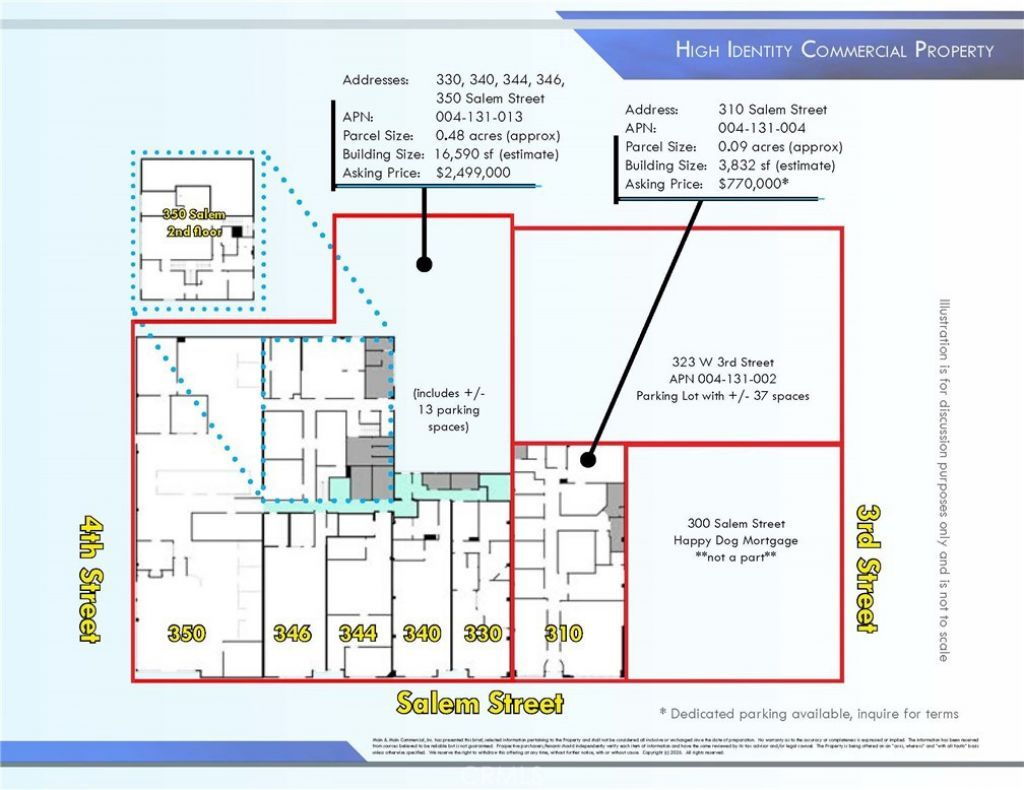 Come and see this downtown Office Commercial property with a lot of flexibility. The perfect owner/user opportunity in the heart of Chico! Also available for lease, 310 Salem is an excellent downtown building with three restrooms, a large employee breakroom area, some private offices and several large gathering/conference spaces. The signage and visibility are excellent, lots of amenities are nearby, and there's plenty of parking .. very unique for a downtown asset! The property is available for purchase and for lease, together with the adjacent building at 350 Salem. There is a lot of flexibility here for varying uses. Even better ... this downtown property has an adjacent lot on-site where spaces are available for long-term lease or possibly purchase under separate agreement (terms apply) plus plenty of street parking and its right across from the parking garage! Schedule a tour today!