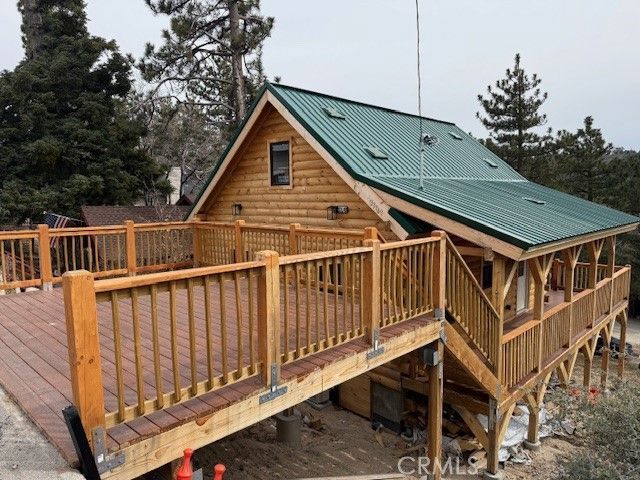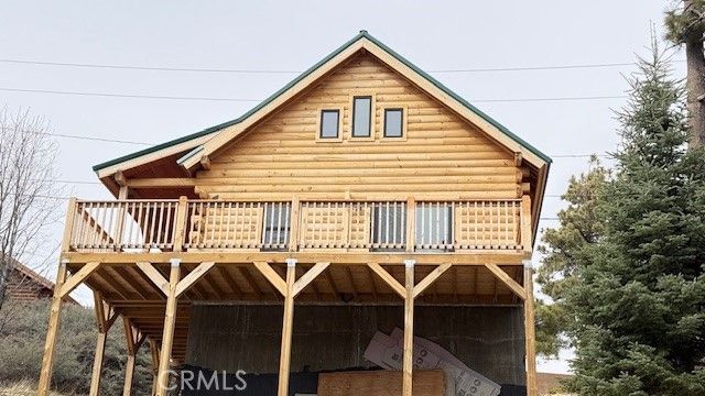 Here is Your Rare Opportunity to own this charming true log cabin which offers a peaceful retreat in the heart of the mountain resort of Green Valley Lake. Surrounded by towering pines and panoramic vistas, cabin boasts breathtaking views of the rugged peaks and serene valleys. This two bedroom layout complemented by a cozy loft bedroom provides plenty of space for relaxation and hosting family events. The rustic log architecture features kiln-dried pressure treated wood finishes, vaulted ceilings and large windows that flood the space with natural light, offering a seamless blend of indoor comfort and outdoor beauty. This is one-of-a-kind custom home in Green Valley Lake, that also features a fire retardant metal roof and a Fire Suppression sprinkler system throughout the home. The community adds to the appeal with access to a private lake, perfect for fishing, kayaking, boating and swimming or simply enjoying the tranquil setting. Buyers may continue the construction on the unfinished basement adding approximately another 700+ square feet. This is a must see home!
