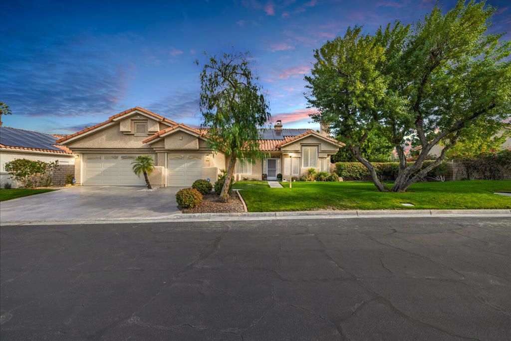 First time been on the market in 36 years. This remodeled exceptional single story pool home is tucked within The Links, a private enclave inside the prestigious Desert Falls Country Club, offering refined design paired with true resort-style living. The residence features four bedrooms that is ideal for guests or multigenerational living. Extensive high-end upgrades include 25 fully paid solar panels paired with a 24 kW backup generator delivering both luxury and energy efficiency. The stunning remodeled kitchen showcases custom cabinetry, slab granite countertops and a beautifully integrated stainless steel refrigerator, while a sophisticated bar with slab granite, custom cabinetry that enhances entertaining. Charming porcelain tile flows through the main living areas of kitchen, dining and living room. Guest bedrooms have upgraded laminate wood flooring. Plantation shutters throughout providing timeless elegance. The primary bath is a true retreat, highlighted by quartz surfaces, custom above counter custom sinks, and a walk-in shower. Outdoors, the expansive backyard is an entertainer's dream, featuring an outdoor BBQ island, large saltwater pool and spa with LED lighting, and specialty lighting throughout the home and landscape, all framed by lush custom landscaping. Three fireplaces add warmth and ambiance throughout the home, while a spacious three-car garage completes the property. Homeownership includes WiFi and cable, tennis, pickleball, a state-of-the-art fitness facility, and 24-hour guard-gated security, with Desert Falls Country Club offering flexible pay-as-you-play or membership options. Perfectly situated mid-valley with easy I-10 access, this home is moments from dining, shopping, and everyday conveniencesa'and just minutes from the renowned Acrisure Arena, home to the Coachella Valley Firebirds and world-class entertainment.