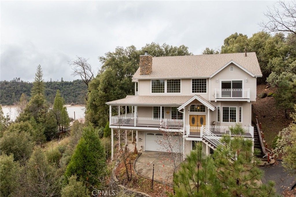Custom Richwell Home with Lake Views, Privacy & Boat Slip on Oak Dock Perched above the surroundings for enhanced privacy, tree, and lake views, this stunning custom Richwell home offers exceptional craftsmanship and thoughtful design throughout. Vaulted and coffered ceilings, granite countertops, custom wood flooring, and an abundance of windows fill the home with natural light and showcase beautiful lake views. The main level features a spacious great room open to the kitchen and dining areas?ideal for both everyday living and entertaining. Off the dining area, a covered wraparound deck constructed with Trex-style materials, powder-coated railings, and wraps to the front of the home, creating seamless indoor-outdoor living. A large bedroom and full bath complete the main level. Upstairs, the elegant primary suite is accessed through French doors and offers a private retreat with a jetted tub, travertine tile floors, walk-in closet, and a private balcony. The open landing overlooks the living room below, adding to the homes airy feel. Two additional upstairs bedrooms and a full bath are included, with one bedroom featuring its own private balcony. Additional highlights include abundant storage, dual A/C and heating systems installed in 2019, a 400-lb winch for conveniently bringing firewood up to the main level, and southern exposure that helps melt snow and ice more quickly in winter. The oversized two-car garage offers extra height and space?perfect for boat storage?with an extra-tall garage door. Enjoy excellent access with two entry points to the home, ample parking, and a boat slip on Oak Road Dock, making this property ideal for lake living.
