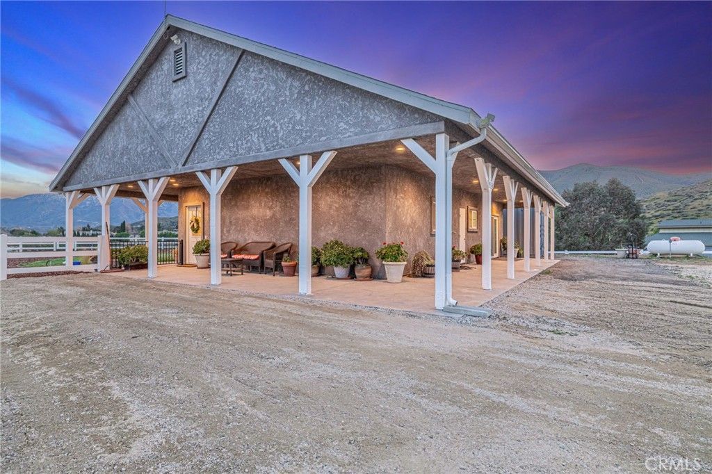 Welcome to your private country retreat showcasing stunning mountain views and tranquil surroundings. This newly built, meticulously maintained single-story home offers the ideal combination of rural charm and modern convenience. A welcoming wraparound covered porch creates the perfect setting for morning coffee or relaxing sunset evenings. Inside, the open-concept floor plan features soaring ceilings, recessed lighting, and wide-plank laminate flooring throughout, creating a bright and cohesive living space. The spacious kitchen is designed for both everyday living and entertaining, complete with rich wood cabinetry, granite countertops, stainless steel appliances, a custom tile backsplash, and a large peninsula with bar seating. The adjoining dining area is filled with natural light, making it ideal for gatherings. The generously sized primary suite offers peaceful outdoor views and private patio access, creating a light and serene retreat. An additional well-proportioned bedroom provides flexibility for guests, a home office, or hobby space. Step outside to enjoy fenced areas and usable land with endless possibilities?bring your animals, RV, and recreational toys, or design your dream outdoor oasis. A convenient dog washing station adds a thoughtful touch for your furry companions. Enjoy the privacy of country living while remaining just a short drive from town amenities. Move-in ready with scenic views, modern finishes, and room to grow?this is the one youve been waiting for. Plans available for a 600 sq. ft. ADU, offering a great opportunity to add additional living space or rental income potential.