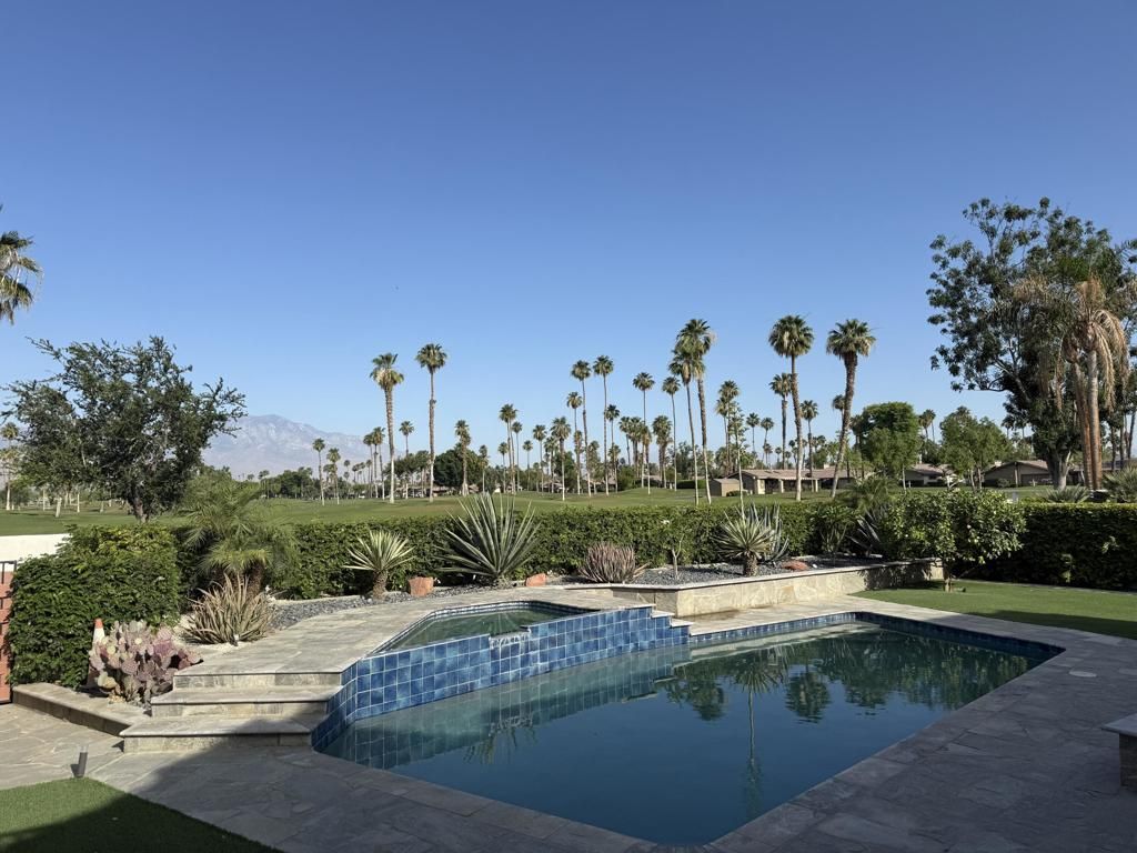 Welcome to 41215 Carlotta Drive, an elegant and fully furnished desert retreat offering sweeping golf course frontage, unobstructed views of the San Jacinto Mountains, and luxurious indoor-outdoor living. Enjoy your morning coffee and evening tea with the wonderful views offered by this vacation getaway. This beautifully maintained 4-bedroom, 3-bathroom home is a perfect seasonal getaway or short-term vacation rental, designed to capture the essence of the Palm Desert lifestyle. Please see the virtual tour. https://my.matterport.com/show/?m=bhVeBpioQcXInside, the home boasts a bright, open layout with vaulted ceilings and large windows that frame the dramatic natural surroundings. The living room is warm and inviting, centered around a cozy fireplace, while the adjacent kitchen features granite countertops, stainless steel appliances, and ample room for entertaining. Stylish furnishings and curated decor throughout create a turnkey experience for guests. The spacious primary suite includes direct backyard access, a walk-in closet, and a spa-like bath, while the additional bedrooms offer comfort and flexibility.Step outside to discover your private backyard paradise. Overlooking the fairways of The Lakes Golf Course, the outdoor space includes a sparkling pool and spa, a covered patio for lounging or al fresco dining, and a custom gas firepit--perfect for cool desert evenings. A dedicated TV watching area enhances the entertainment options, allowing you to enjoy your favorite shows or sports with mountain views in the background.Set in a peaceful Palm Desert neighborhood not affiliated with The Lakes Country Club, this home is ideally located just minutes from El Paseo shopping, fine dining, golf, and hiking. Offered fully furnished for vacation rental, this property is an exceptional find for snowbirds, families, or anyone looking for a turnkey escape in the Coachella Valley.Minimum 30 days rental. Rates Fluctuate based on season.May - September - $6,500/monthNovember/December $6,500/monthJanuary - April $8,000/monthRates Negotiable if term exceeds 30 days.