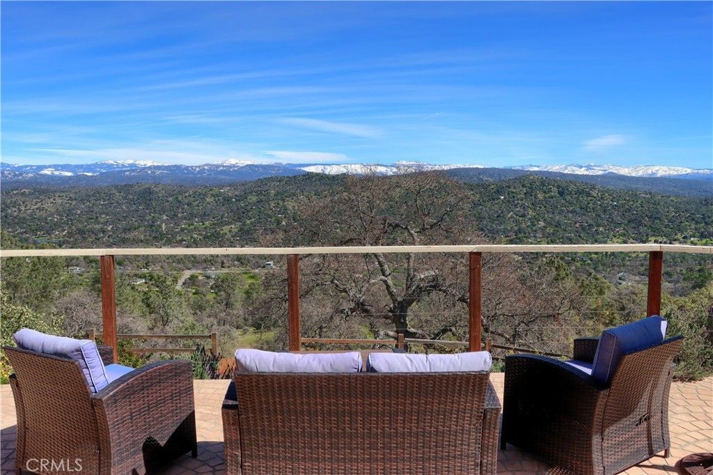 Single-story custom home on over 5 private acres offering panoramic, unobstructed 180-degree mountain and sunrise views. Built in 2015, this 3,986 sq ft residence features 5 bedrooms and 4 bathrooms, including a separate furnished guest house with bath (included in count), along with two large, dedicated office spaces ideal for remote work or multi-generational living. The home is filled with expansive windows in every room, bringing in abundant natural light and capturing scenic views throughout. The main living area showcases dramatic 16-foot floorto-ceiling windows framing the sunounding landscape and an impressive gas fireplace. Spacious eat-in kitchen includes granite countertops, abundant cabinetry, and a large walk-in pantry. The primary suite offers a spa-like en suite bath with steam shower, soaking tub, dual vanities, and a generous walk-in closet. A second primary suite includes its own en suite bath and walkin closet. Neutral finishes throughout make the home move-in ready. A gently winding private driveway approximately one-tenth of a mile from the main road leads to the home, enhancing privacy and creating a quiet, secluded setting. Notable features include metal roof, fire-resistant siding, fire sprinklers, fire-rated windows, and owned solar. Additional amenities include a private gated entry, three-car garage with separate workshop waterfall fountain at the entry, and low-maintenance natural landscaping with drip irrigation. Property is ideally situated above the fog and below the snow, offering privacy, scenic beauty, and comfortable year-round living.