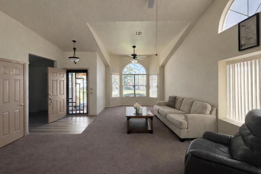 Discover the perfect blend of modern elegance and relaxed living in this stunning home. This bright, airy home boasts soaring vaulted ceilings and an open floor plan that seamlessly flows from the spacious living room to the inviting dining area. A stunning double-sided fireplace effortlessly sets the mood, warming both spaces with its charm. The kitchen, equipped with modern appliances and generous counter space, is perfect for both everyday meals and entertaining. The master suite offers a serene escape with a walk-in shower, while the second bathroom features sleek, contemporary finishes. For added fun, a spacious game room awaits your entertainment. Outside, the beautifully manicured front yard and shaded lawn provide the ideal setting for relaxing or entertaining guests. With both style and functionality, this home is a true gem. Don't miss the chance to make it yours.