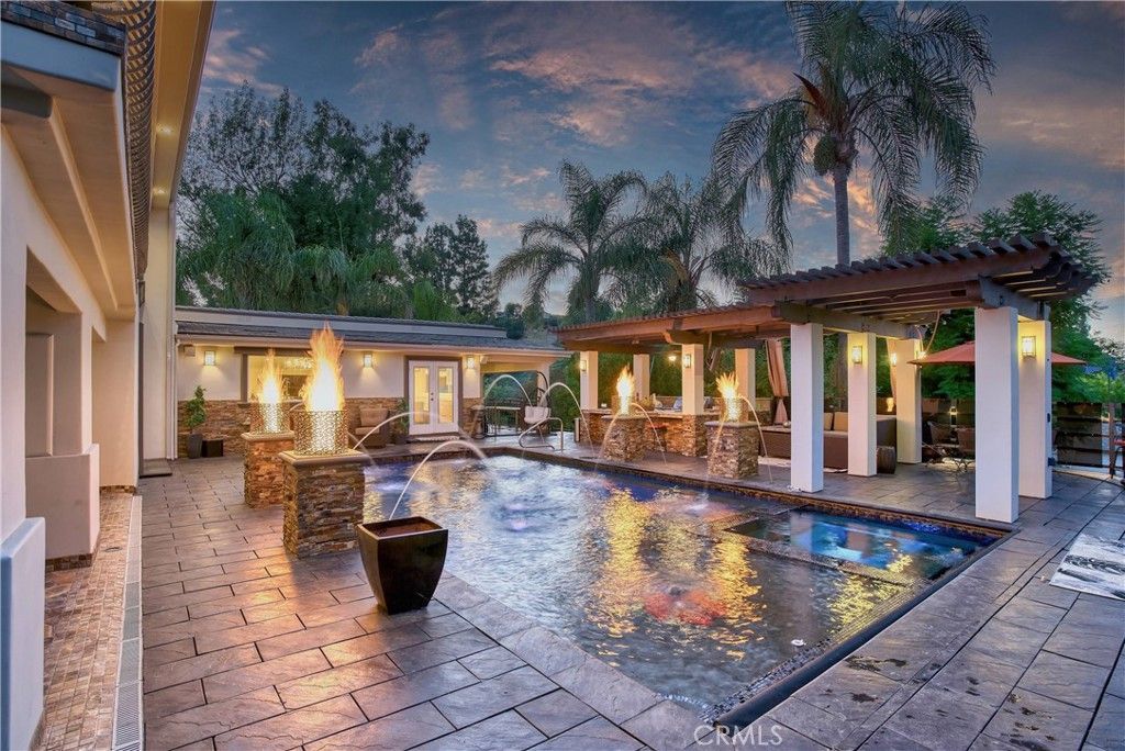 Stunning home, south of the blvd in highly coveted Tarzana is now listed for sale, and available for viewing. Sitting on nearly half an acre, this home has nearly every accommodation you could ask for, including EV charger! The main house has 4 bedrooms and 5.5 bathrooms, 4,521 sqft of luxury living. The chef's kitchen includes an oversized island with stainless steel appliances, warming drawer, walk-in pantry, custom cabinetry and so much more! The primary suite includes a Japanese soaking tub and separate steam shower with heated floors for that authentic spa experience, including His and Her walk-in closets. A lower level gated area is perfect for RV parking, garage or sports court. This property includes a detached 2 bed, 1 bath 1,142 sqft guest house that can be used for guests or a state-of-the-art recording studio, office or as a rental property. The backyard is designed in a grand resort style. Palatial salt water pool, heating, misting, koi pond, sound system and TV's throughout... built as a home with entertaining in mind! Every accommodation you could ask for.