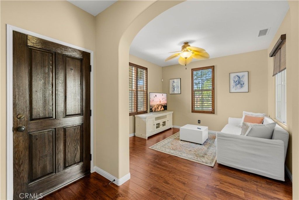 Currently furnished; furniture can be removed upon request. Open to negotiating a long-term lease. Beautiful Corner Lot Home with Dual Primary Suites in Woodbury, one of the most desirable communities in Irvine. Currently furnished; furniture can be removed upon request. Open to negotiating a long-term lease. This stunning corner lot home radiates pride of ownership throughout and offers an exceptional blend of comfort, style, and quality upgrades. Featuring two primary suites, each complete with full showers and a solar tube in the primary bath with built in night light and spacious walk-in closets. This thoughtfully remodeled residence provides the perfect balance of luxury and functionality with spectacular views of the corner lot from almost every room. The first floor showcases beautiful Acacia hardwood flooring, while the second floor is complimented by soft Berber carpet. The remodeled kitchen is a true showpiece, featuring quartz countertops with a full-height backsplash, high-gloss white laminate cabinets with premium hardware, LED under-cabinet lighting with adjustable color settings, and modern conveniences such as a pull-out trash system, Super Susan tray storage, double knife drawer, new Kohler pull-down gooseneck faucet, Kraus stainless steel sink with rounded corners, and high end Samsung Bespoke dishwasher, refrigerator and microwave. A large walk-in pantry is located just off the kitchen, offering ample storage space. Additional home features include ceiling fans, window treatments that include Bass wood shutters, roller shades and woven blinds. as well as PEX piping throughout, new water heater, Brondell bidet systems in both primary suites with Kohler showerheads, Kohler hardware throughout the home including all faucets with metal drains and downstairs bathroom has a comfort high Kohler toilet. The outdoor stone and pebble patio provides a peaceful, low-maintenance retreat complete with a gas BBQ outlet, Weber grill, and lush Triangle Palm and Ocotillo plants. Some of the energy-efficiencies include Milgard windows, fiberglass insulation between floors, and a roof equipped with a radiant heat barrier for added efficiency. This home truly combines thoughtful design, modern comfort, and timeless appeal?ready for you to move in and enjoy!