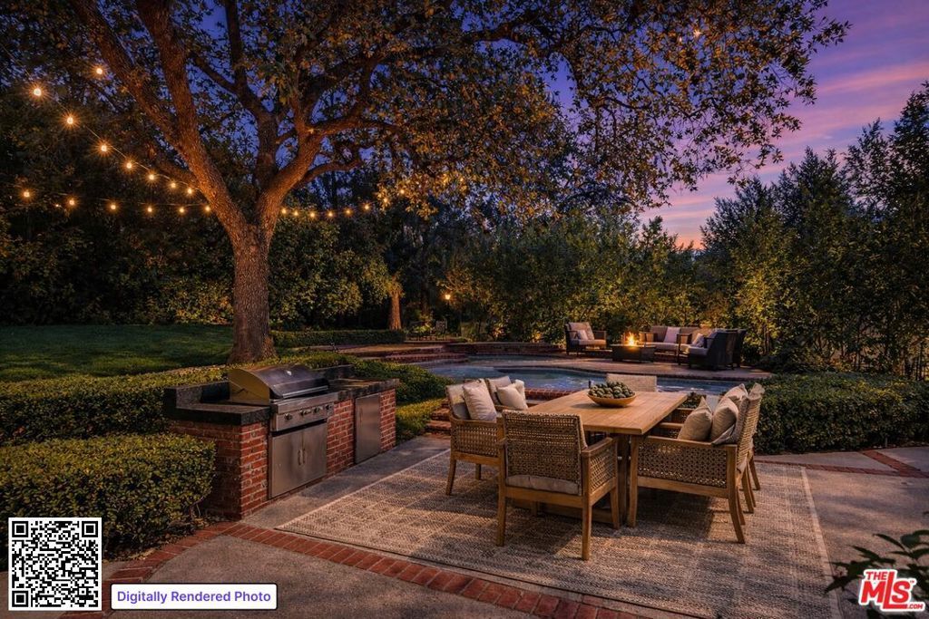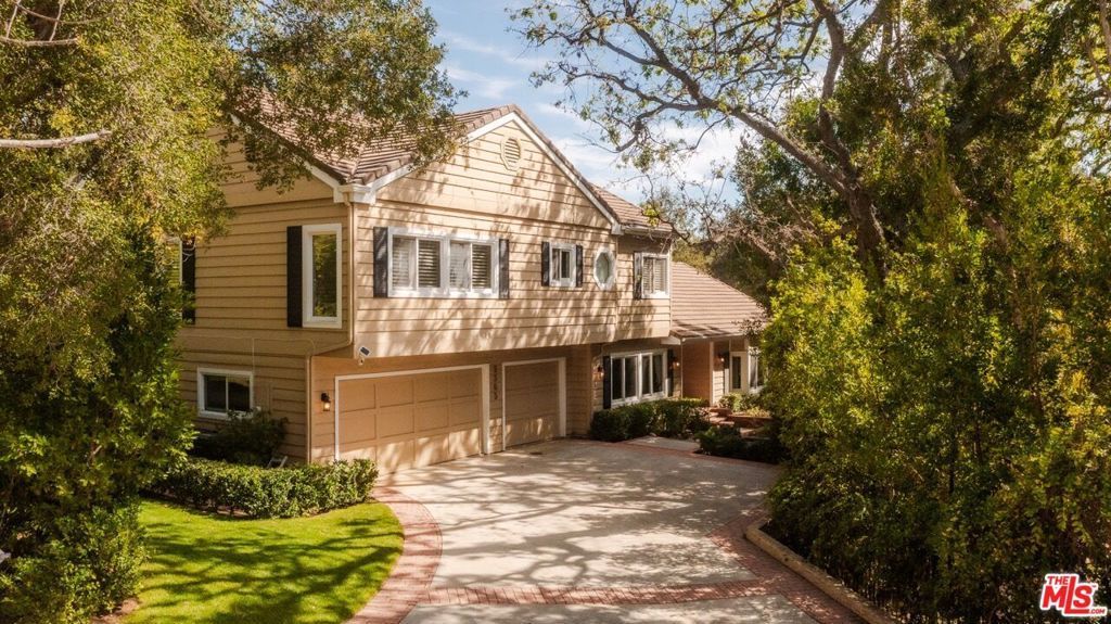 Tucked away at the end of a quiet cul-de-sac and approached by a long private driveway, this gracious 5-bedroom, 5-bath residence offers approximately 3,585 square feet of classic California living surrounded by mature trees and lush landscaping that create a rare sense of privacy. Inside, sun-filled interiors unfold with an effortless flow designed for both everyday comfort and sophisticated entertaining. Formal and informal living spaces are complemented by rich wood-like flooring, exposed beam ceilings, custom built-ins, and a warm fireplace anchoring the inviting family room. The kitchen is well-appointed with granite countertops, custom cabinetry, stainless steel appliances, and a generous center island, opening seamlessly to a breakfast area overlooking the gardens. Upstairs, the expansive primary suite serves as a true retreat with a spacious bedroom, vanity area, walk-in closet and a spa-inspired bath complete with dual vanities, soaking tub, and separate shower. Additional bedrooms offer flexibility for guests, family, or a private home office.The backyard is a private resort-like escape featuring a sparkling pool and spa, built-in barbecue, multiple seating areas for outdoor dining and lounging, and a large grassy lawn framed by mature trees. Ideally positioned near scenic hiking trails, parks, and the nearby golf course, the property also enjoys close proximity to the shopping, dining, and lifestyle amenities of Westlake Village and Thousand Oaksmaking it a wonderful opportunity to enjoy the very best of the Conejo Valley lifestyle.