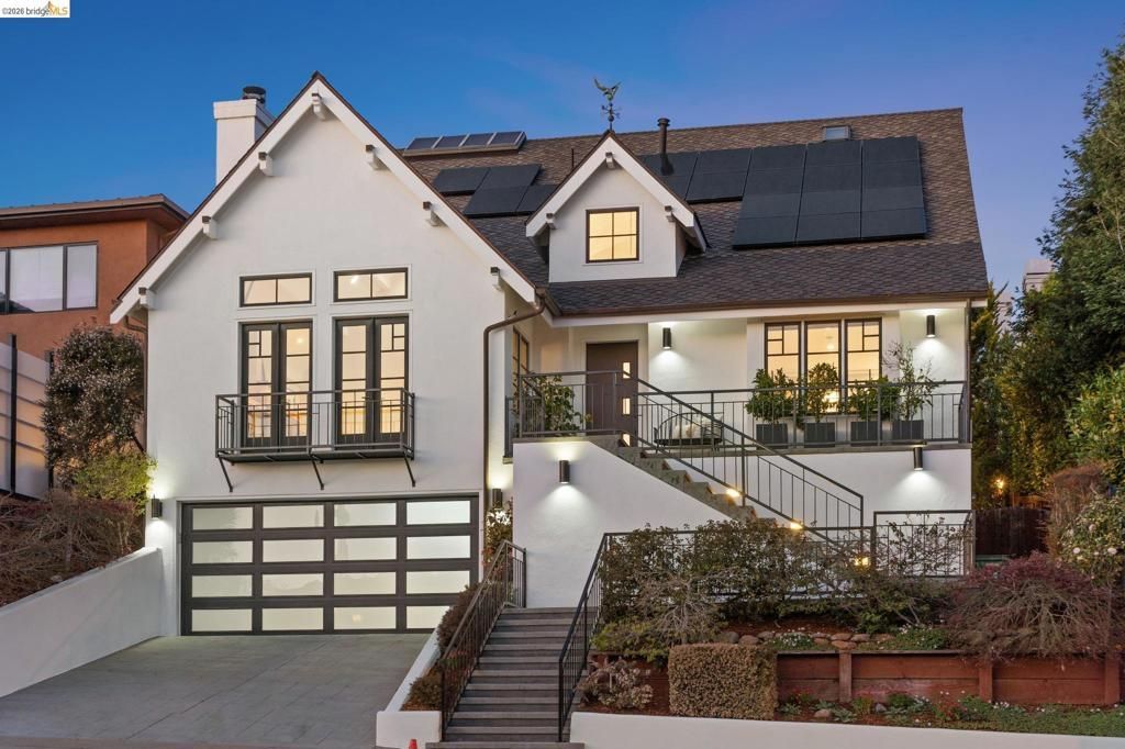 Spectacularly stylish with all the bells and whistles! Luxury is everywhere in this modern architectural masterpiece: dramatic vaulted ceilings, views of the Bay, a primary ensuite on par with a hotel includes a private balcony and spacious walk-in closet, designer lighting, solar panels, custom drapery throughout, and perhaps the most deluxe chefs kitchen of all! Plus a desirable floorplan offers a bedroom suite on the ground level, 3 more bedrooms and 2 full bathrooms and laundry on the upper level, and a separate home office with exterior entrance on the lower level. The colossal 3-car garage has room for a home gym, extra fridge-freezer space, and loads of storage. A garden oasis right off the kitchen/den twinkles at night with a soothing stone fountain, mature maples and a magnolia, and built-in bench seating. All of this is located just minutes to College Avenue shops and restaurants, excellent schools, and outdoor recreational space!