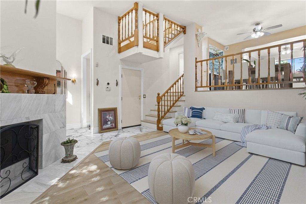 Welcome to the Beautiful remodel townhome with elegant finishes in hart of Tarzana. This private gated community offers 2 bedroom 2.5 bath. This spacious townhome is perfect blend of comfort style and convenience. Upon entry you will step in to a light and bright living room with cozy fire place and high ceiling lead you to the nice patio. Formal dinning room with wet bar. Amazing chef kitchen with Quartz counter tops recessed light stainless appliance lots of cabinets . Master suit with own fire place high ceiling large huge walking closet double sink bathroom shower and bath tub and private balcony.Plantation shutters throughout. Easy access to freeway 101 close to Ventura restaurant and shops. This unit set within a 8 unit community. The Lowe level offers private room almost 300 sq ft with own closet and can be use as a 3d bedroom/ office or gym and two attached car garage. This gated split level townhome comes with low HOA dues cover trash water earthquake insurance maintenance pool and spa come and see it.