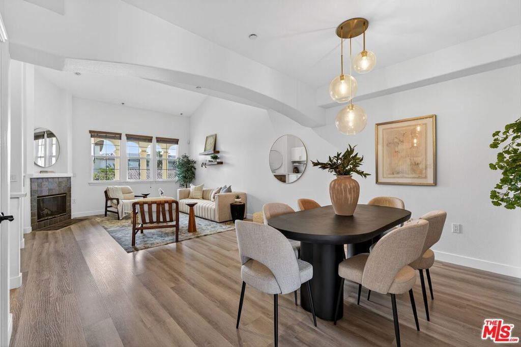Immaculately maintained and updated top-floor, two-story condo in the coveted Villa d'Este community. Located in the heart of Playa Vista, this 3-bedroom residence offers vaulted ceilings, fireplace, and an open living/dining area. The remodeled kitchen features quartz countertops, updated cabinets with ample storage, under-cabinet and recessed lighting, and premium Bosch/LG stainless steel appliances. An adjacent breakfast area provides flexible space for casual dining or a home office. The upper level also showcases new LVP flooring and a renovated powder room. All three bedrooms are privately located on the lower level with a laundry room nearby. The spacious primary suite includes a walk-in closet and bath with soaking tub and separate shower. Additional upgrades include dual Nest thermostats with two separate HVAC systems, and a newer water heater. Enjoy the convenience of two side-by-side parking spaces near the elevator, each with EV charging (Tesla app-connected charger and dedicated 240V outlet on private meter), along with extra storage. Villa d'Este is an intimate community with only 39 units, inspired by Italianate architectural style, and features tiled walkways, colorful bougainvillea, central courtyards, and an outdoor fireplace lounge area. Just across the street from the CenterPointe Club, and short distance to The Resort gym/pool, Whole Foods, multiple restaurants, Cinemark theater, many community parks, and Playa Vista Elementary.