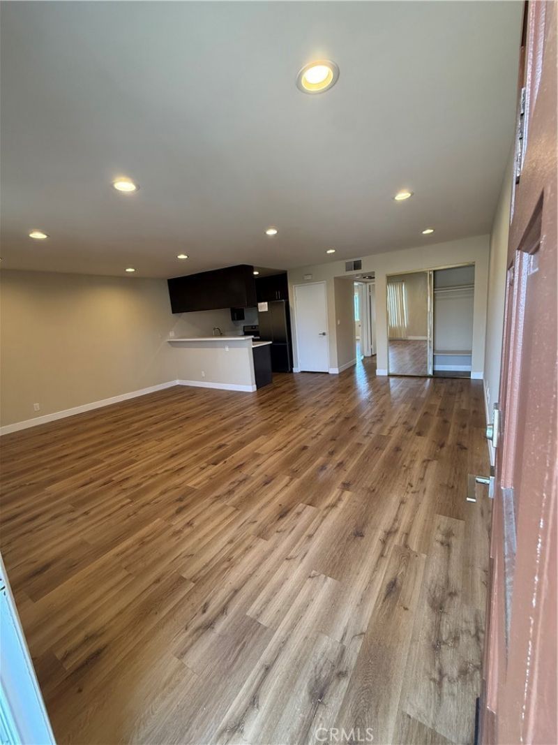 Updated 2BR/2BA unit for lease in desirable Glendale location. Features open floor plan with recessed lighting and wood-style flooring throughout. Modern kitchen with quartz-style counters, stainless steel appliances, contemporary cabinetry, and breakfast bar. Spacious bedrooms with mirrored closets. Updated bathrooms with modern finishes and glass shower enclosures. Includes central HVAC, private entry, community laundry, covered parking, and well-maintained common areas. Clean, bright, and move-in ready. Excellent lease opportunity close to shopping, dining, and transportation.
