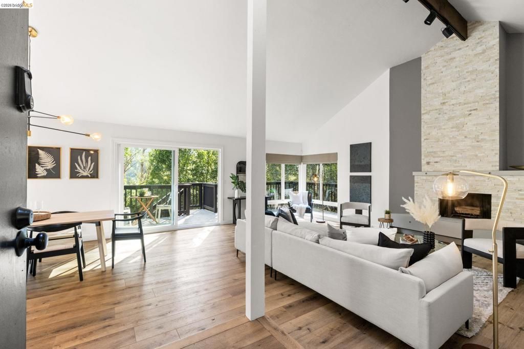 Enter into your own private retreat in the Oakland Hills' Thornhill neighborhood. Anchored by an oversized stone fireplace, the light-filled great room sets the tone for elegant leisure, with living areas flowing gracefully from room to room. An abundance of windows welcome in the verdant surroundings throughout the main floor, with a welcoming multi-level deck off the dining area that beckons for morning coffee or impromptu al fresco gatherings. The wonderfully-updated kitchen features stainless steel appliances and a breakfast bar next to a picture-perfect sitting room, while a secluded loft nook overlooks most of the main floor. Direct garage access from this level is an added convenience. Finally, a bedroom with direct exterior access rounds out the main floors offerings. Downstairs, find an enviable primary suite with updated bath, as well as two more bedrooms, laundry and a remodeled full bath, as well as direct access to the back deck structure. On the lowest level, accessible from the deck, find your bliss with a lounge, half-bath, and dry sauna room. Perfection.