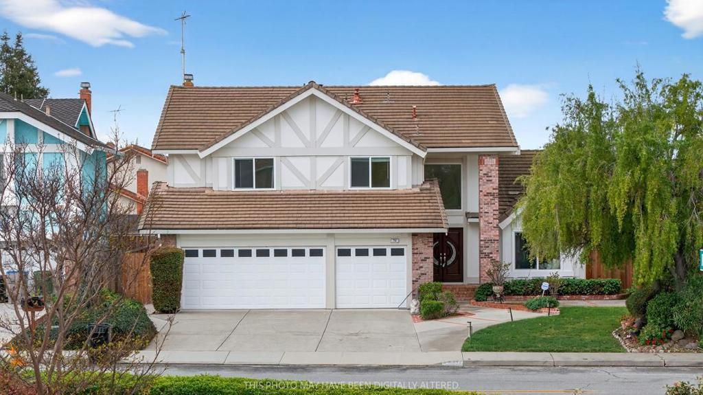 Beautiful, spacious and thoughtfully upgraded, this 4-bedroom, 3-bathroom home offers over 2,700 sq ft of living space on a generous 6,000+ sq ft lot. The home features soaring high ceilings and an open-concept design, creating bright and inviting living spaces filled with natural light from expansive windows throughout. The well-designed floor plan includes a formal living room, a separate family room, and an open-concept kitchen that flows seamlessly into the main living areas. A convenient downstairs bedroom suite provides flexibility for guests or multi-generational living, while an elegant spiral staircase adds a striking architectural centerpiece. Extensively upgraded by the current owner, the home includes energy-efficient Low-E windows, a new range, and numerous thoughtful improvements. Enjoy pleasant mountain views and a flat backyard ideal for outdoor dining, gardening, or play. The yard also features flowers and fruit trees including loquat, fig, pear, apple, and lemon. Situated on a quiet residential street with no HOA, the property also offers a rare 3-car garage with additional driveway parking.