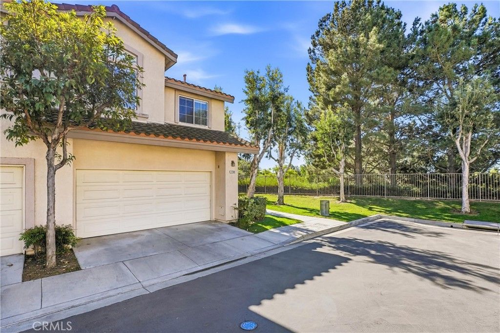 Welcome to this highly upgraded end-unit home, ideally situated at the end of a quiet cul-de-sac within the gated Viewpoint North community. Offering 3 bedrooms and 2.5 bathrooms, this residence delivers a serene lifestyle enhanced by beautiful canyon and city views from the kitchen and upper-level windows. Step inside to discover neutral-tone wide plank flooring, custom shutter window coverings, and thoughtfully curated designer finishes throughout. The inviting living room features soaring ceilings, recessed lighting, a cozy fireplace, and an open-concept layout that seamlessly connects to the kitchen.The spacious kitchen is large enough to accommodate a full dining table and showcases quartz countertops, sought-after shaker-style cabinetry, stainless steel appliances, and custom storage solutions. The adjacent dining area provides direct access to the lower-level patio, where you can enjoy peaceful views of the greenbelt that surrounds the home from front to back.Upstairs, the primary suite offers high ceilings, recessed lighting, and a private balcony with tranquil tree views. The primary bathroom is generously sized and features a grand dual-sink vanity with shaker-style cabinetry, a walk-in shower, and a large walk-in closet. The conveniently located upstairs laundry room adds everyday ease.Two additional bedrooms and a full bathroom are thoughtfully positioned at the opposite end of the hallway, offering privacy from the primary suite.This meticulously maintained home is truly a rare find. Additional highlights include an attached garage with storage, upgraded finishes throughout, an open floor plan, and desirable end-unit privacy, Upgraded Electrical Panel, Car Charge Outlet, Water Softener & Osmosis System. Residents of Viewpoint North enjoy resort-style amenities including pools, spas, and tennis courts. Ideally located near shopping, dining, the 91 Freeway, 55 Freeway, 241 Toll Road, and award-winning schools.