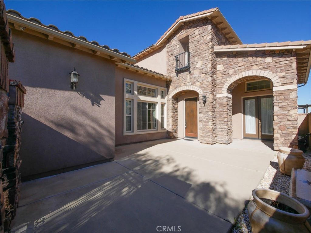 Located in the guard-gated community of The Retreat in Corona. Prestigious home spanning 4,555 square feet on a serene quarter-acre lot, this 5 bedroom, 4.5-bathroom masterpiece is designed for both luxurious living and seamless entertaining. As you enter through the private courtyard, you are greeted by soaring 20+ foot high ceilings that create an airy and inviting atmosphere. The formal dining room and living room provide the perfect backdrop for exquisite gatherings. The expansive family room, also boasting 20-foot ceilings, invites relaxation and connection, making it the heart of this stunning home. The gourmet kitchen is a culinary enthusiast's dream, featuring an island, a spacious kitchen nook, a large pantry, sleek black appliances and abundance of cabinetry that caters to both functionality and style. The highly sought-after downstairs primary suite offers a serene retreat, with a captivating ensuite bathroom featuring double sinks, a separate sitting vanity, large walk-in shower and soaking tub. The walk in closet includes an abundance of storage for your everyday or evening wear. Upstairs includes two separate junior suites ?each with their own private baths and walk-in closets?provide guests or family members with ultimate comfort and privacy. The front bedroom includes a charming private balcony and a built-in desk, ideal for quiet reflection or productivity. Two more secondary bedrooms frame the other wing of the second floor. The beauty of this home extends beyond its interiors. With exquisite wood and stone flooring throughout, every inch has been crafted with care. The expansive backyard is a private oasis with a serene rock fountain, perfectly sized and adorned with a putting green, built-in BBQ island complete with burners, sink and a fridge surrounded by custom hardscaping, making it an entertainers paradise. Every window frames a picturesque view of the mountains. The Retreat is the Inland Empire's premier 24-hour manned gated community.