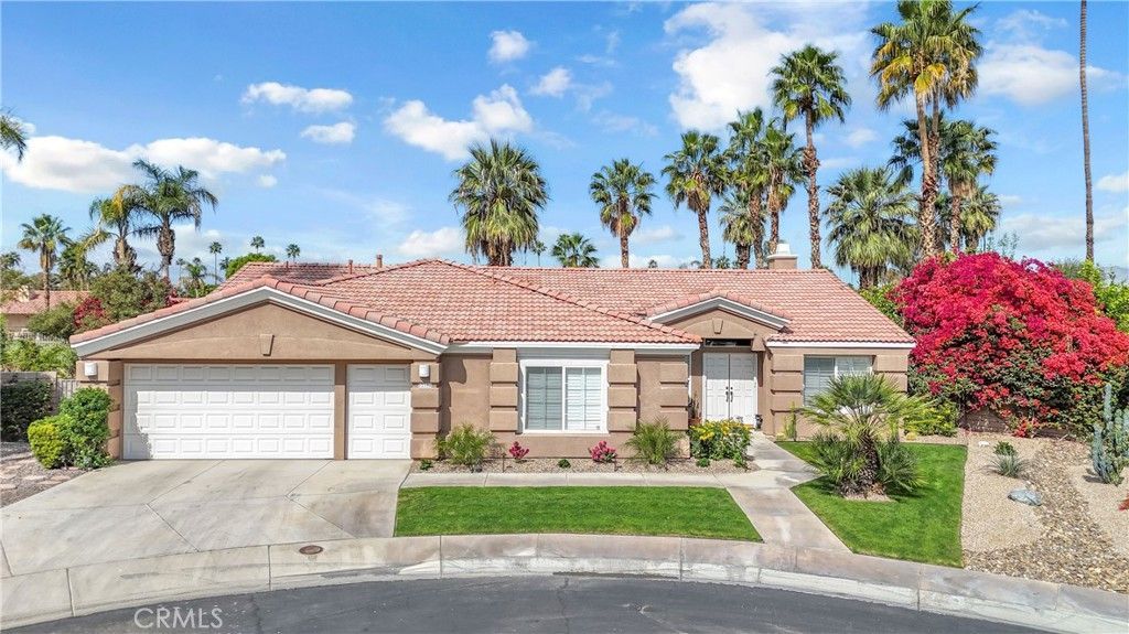 Tucked away at the end of a peaceful cul-de-sac in Indian Palms Country Club, this stunning home offers a perfect blend of luxury and tranquility. Enjoy the convenience of being within walking distance to the Coachella and Stagecoach Fairgrounds, with Downtown Indio just a short drive away. Step into a bright and open layout featuring a spacious living and dining area bathed in natural light from high ceilings and expansive windows. The home includes four generously-sized bedrooms, highlighted by a luxurious master suite with a beautifully appointed ensuite bathroom, as well as a private casita with its own entrance and ensuite bathroom, perfect for guests or family. Outside, relax in your own paradise with a gorgeous pool and jacuzzi, complemented by sweeping views of the lush golf course and enhanced privacy from thoughtfully placed bougainvillea. The expansive outdoor space is ideal for al fresco dining, allowing you to soak in picturesque scenery. With incredibly low HOA fees and the option to rent the home for 30 days or more, 82184 Crosby Dr. is a fantastic opportunity for either a primary residence or an investment property. Embrace the lifestyle youve always dreamed of?dont let this opportunity slip away!