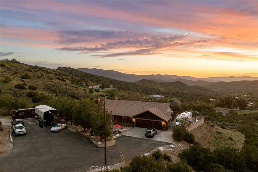 Spacious single-story 3,000 sq ft view home in beautiful Agua Dulce, CA, situated on over 6 private acres, offering tranquility, open space, and scenic surroundings. This home features a functional 3 bedroom and 3 full bathroom open layout with generous living areas filled with natural light, a gourmet kitchen equipped with Viking appliances, and ample storage. A dedicated game room provides flexible space for recreation or entertaining, while well-sized bedrooms offer comfort and versatility for family or guests. Cozy up by the fireplace or pellet stove for added warmth and ambiance. Recent updates include a newer roof, newer HVAC system including 3 main rooms served by a new mini split to offset cooling costs, and septic system and upgraded bathrooms for added peace of mind. The entertainers backyard is designed for relaxation and gatherings, featuring an in-ground pool and spa, expansive grounds, and breathtaking views. A large patio with fireplace showcasing the amazing sunset views. The property also includes a 3-car garage with ample RV and boat parking, perfect for hobbyists or outdoor enthusiasts. Conveniently located with easy access to shopping, dining, and schools, this home offers the ideal combination of privacy, luxury, and functionality. A rare opportunity to own a view property with acreage, resort-style amenities, and everything needed for comfortable, elegant living. Come for a visit. Stay for a lifetime. Welcome Home!