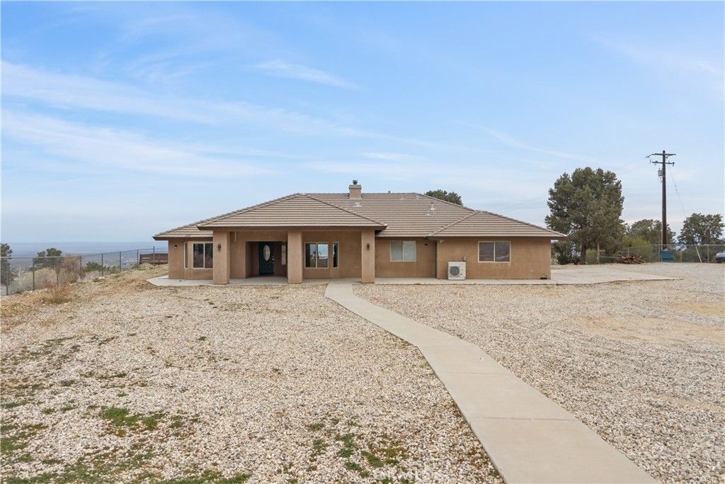 Nestled on a sprawling 4.32-acre lot in tranquil Pinon Hills, this charming 4-bedroom, 2-bathroom home offers 2,297 square feet of modern living space. Inside, enjoy vaulted ceilings, Acacia wood flooring, and a cozy wood-burning stove in the living room. The gourmet kitchen features granite countertops, double ovens, cooktop stove, and an island, with a refrigerator included. The master suite boasts a walk-in closet, on-suite bathroom, and outdoor access. Outdoors, the property features an attached 3-car garage, a fully insulated 40x25 ft warehouse, and a 14x25 ft RV garage, perfect for workshops or storage. Upgraded with a 400-amp electrical system, this home is ideal for RV enthusiasts or hobbyists. The expansive lot offers privacy, panoramic high desert views, and potential for subdivision. Experience serene desert living with modern comforts and endless possibilities!